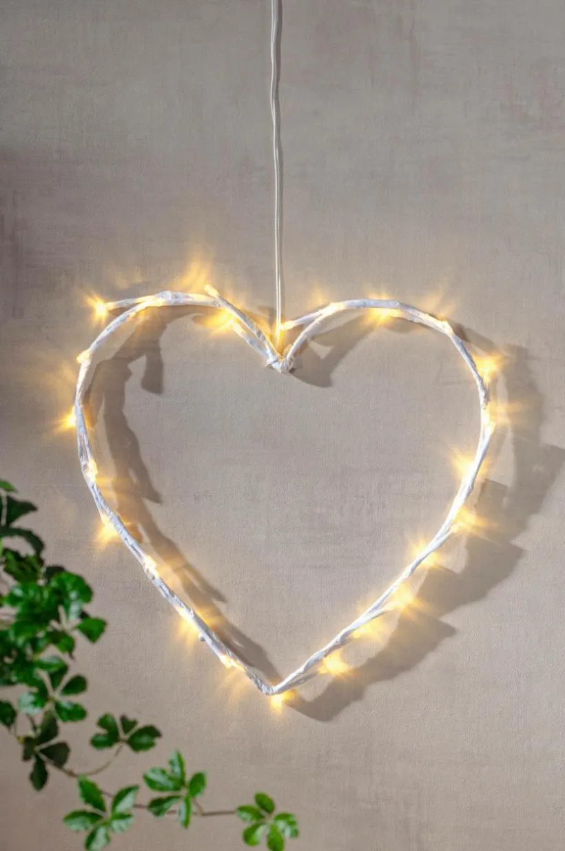 Hjärtformad LED-ljusdekor ger värme och charm till ditt hem. Den här batteridrivna lampan har fina LED-punkter som ger ett mjukt sken som är perfekt för högtider eller mysiga kvällar. Dess minimalistiska design kompletterar olika stilar, medan den praktiska timerfunktionen säkerställer användarvänlighet. Perfekt för att skapa en inbjudande atmosfär och ge en charmig touch till din juldekor.