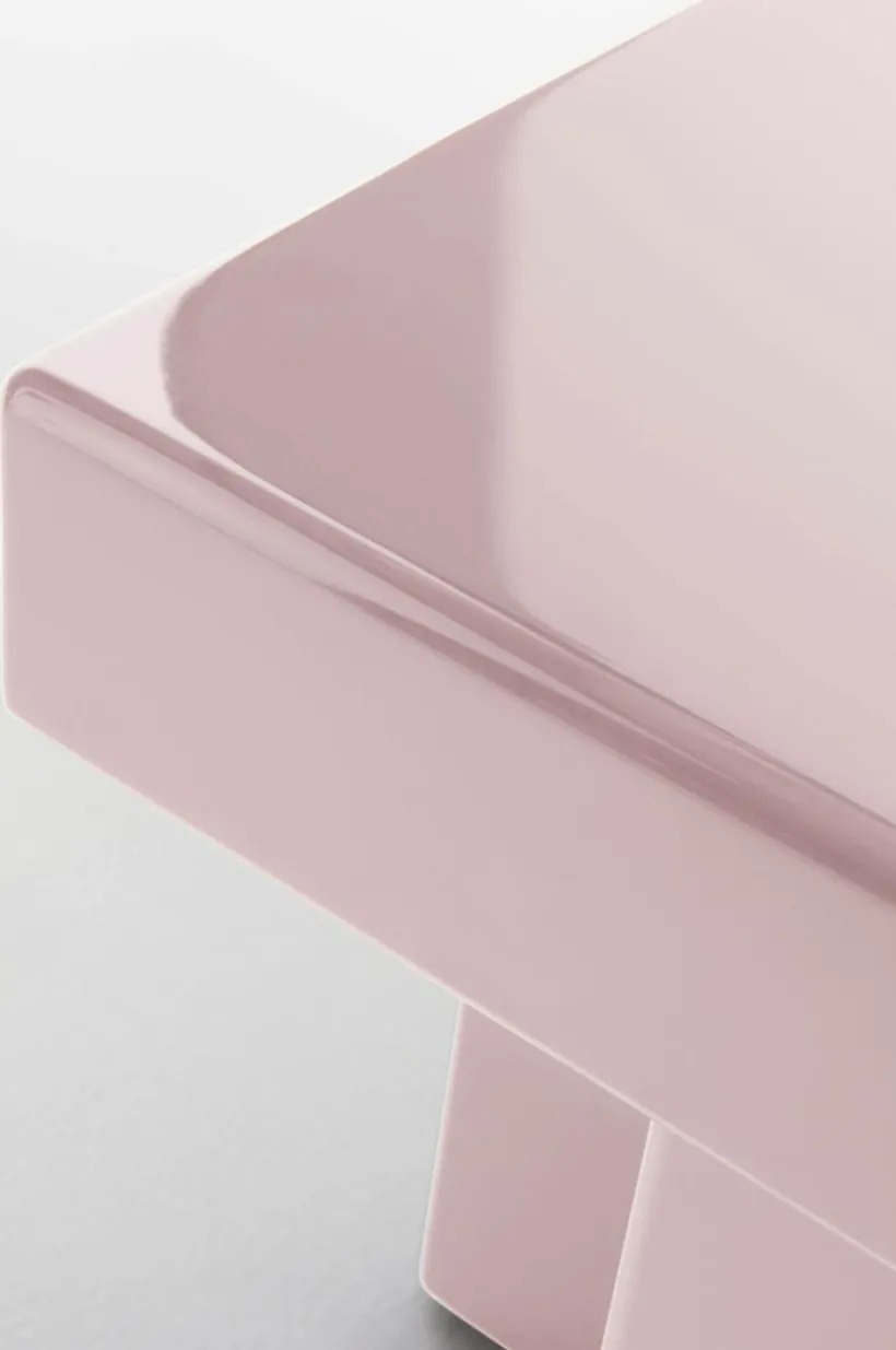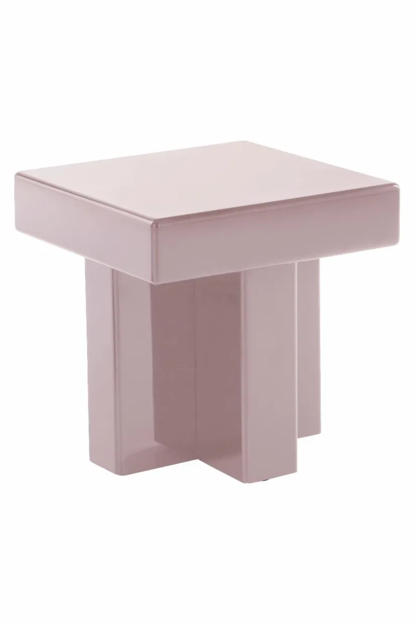 Fyrkantigt sidobord i kompakt och tuff design, bordet är av MDF med högblank lack. Den kraftiga och samtidigt lilla bordsskivan vilar på ett lika kraftigt kors som utgör benen. Småbord likt detta är lätt att flytta efter dina behov, det är litet och behändigt att ha bredvid soffan och det blir ett piggt inslag som sängbord bredvid sängen. Viss montering krävs. Monteringsanvisning medföljer.
