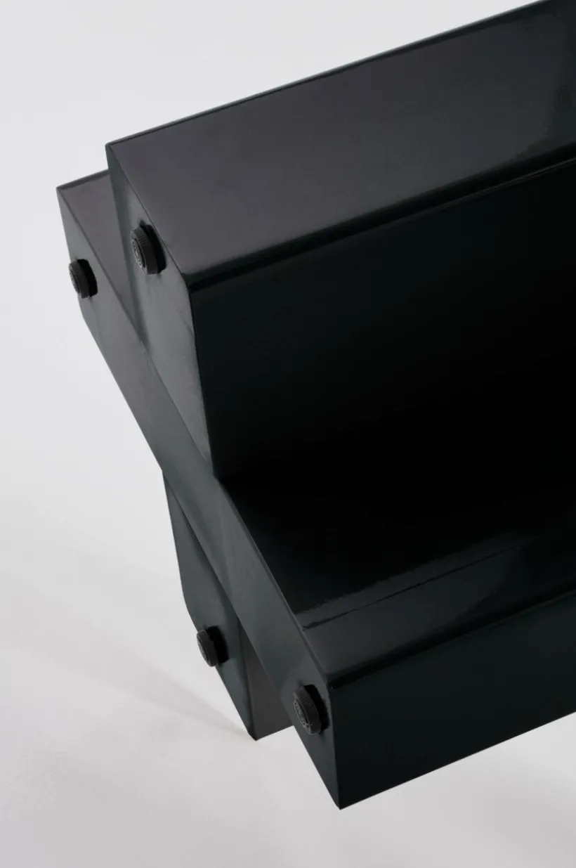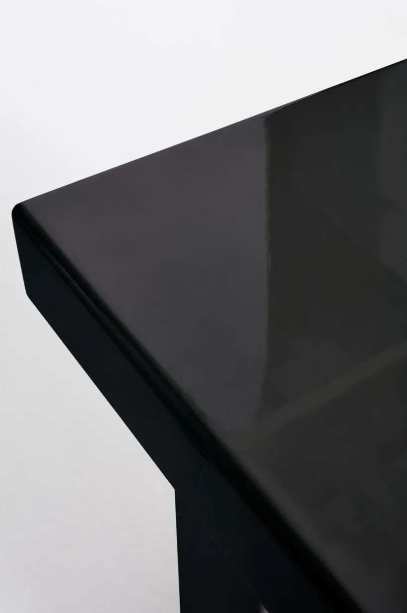 Fyrkantigt sidobord i kompakt och tuff design, bordet är av MDF med högblank lack. Den kraftiga och samtidigt lilla bordsskivan vilar på ett lika kraftigt kors som utgör benen. Småbord likt detta är lätt att flytta efter dina behov, det är litet och behändigt att ha bredvid soffan och det blir ett piggt inslag som sängbord bredvid sängen. Viss montering krävs. Monteringsanvisning medföljer.