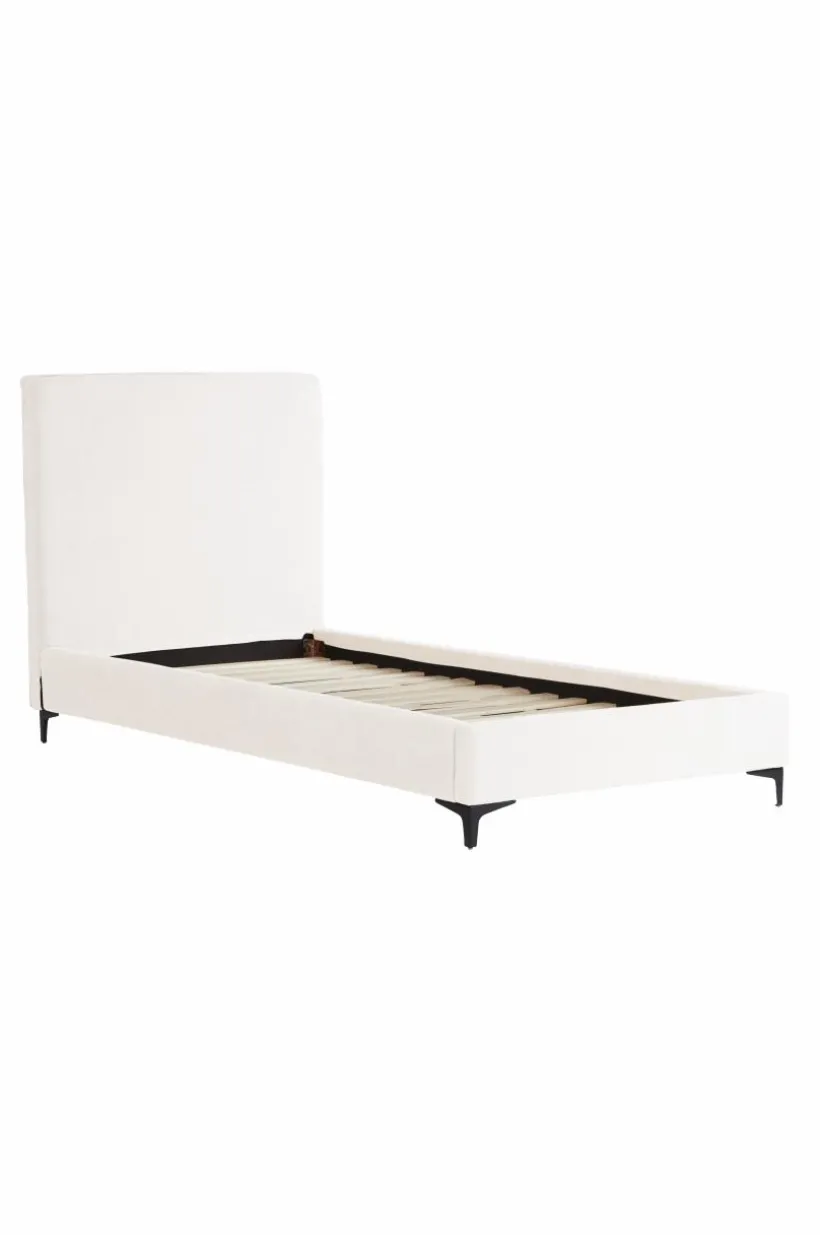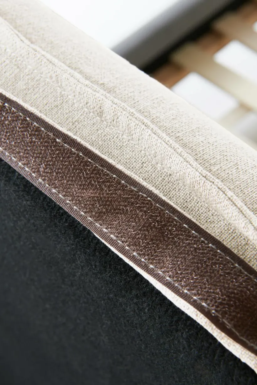 Barnsäng med klädsel i luftigt linne, stomme av plywood och mjuk skumfyllning av polyuretan. En mjuk och mysig säng som passar perfekt när ditt barn har vuxit ur juniorsängen. Används med madrass i storleken 90×200 cm. Madrass medföljer ej.