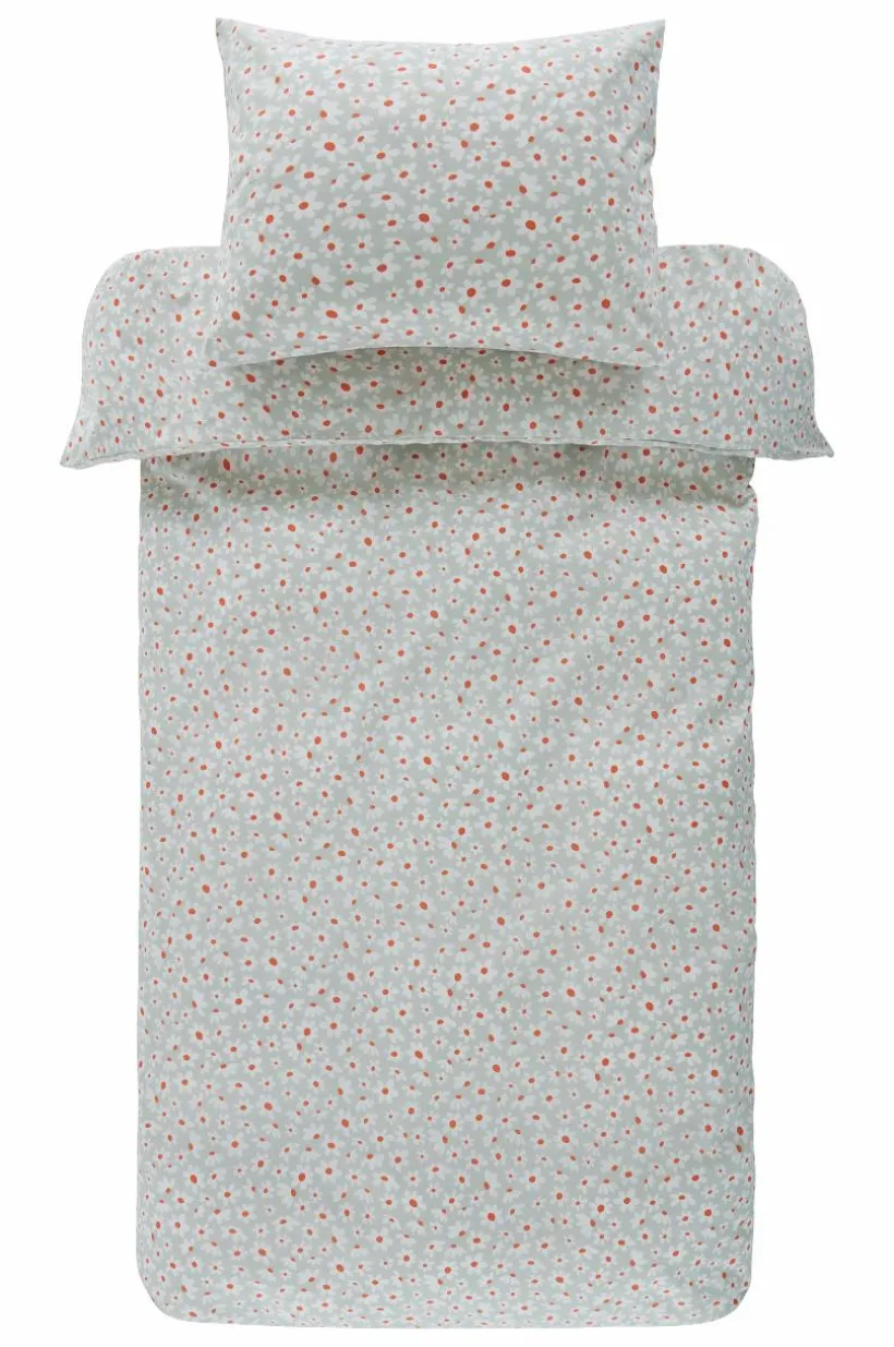 Småblommigt påslakanset med ett påslakan och ett örngott i ekologisk bomull. Tyget är behagligt med mjukt tryck, bomull är svalt och skönt mot huden. Fantasiblommorna påminner om vita små tusenstjärnor på en varm och mysig bottenfärg. Öppning i övre hörnen på påslakanet, som underlättar att trä påslakanet över täcket. Trådtäthet på 144 tc. (Trådtätheten talar om antalet trådar, thread counts, per kvadrattum i ett tyg. Ju högre trådtäthet desto högre kvalité.)