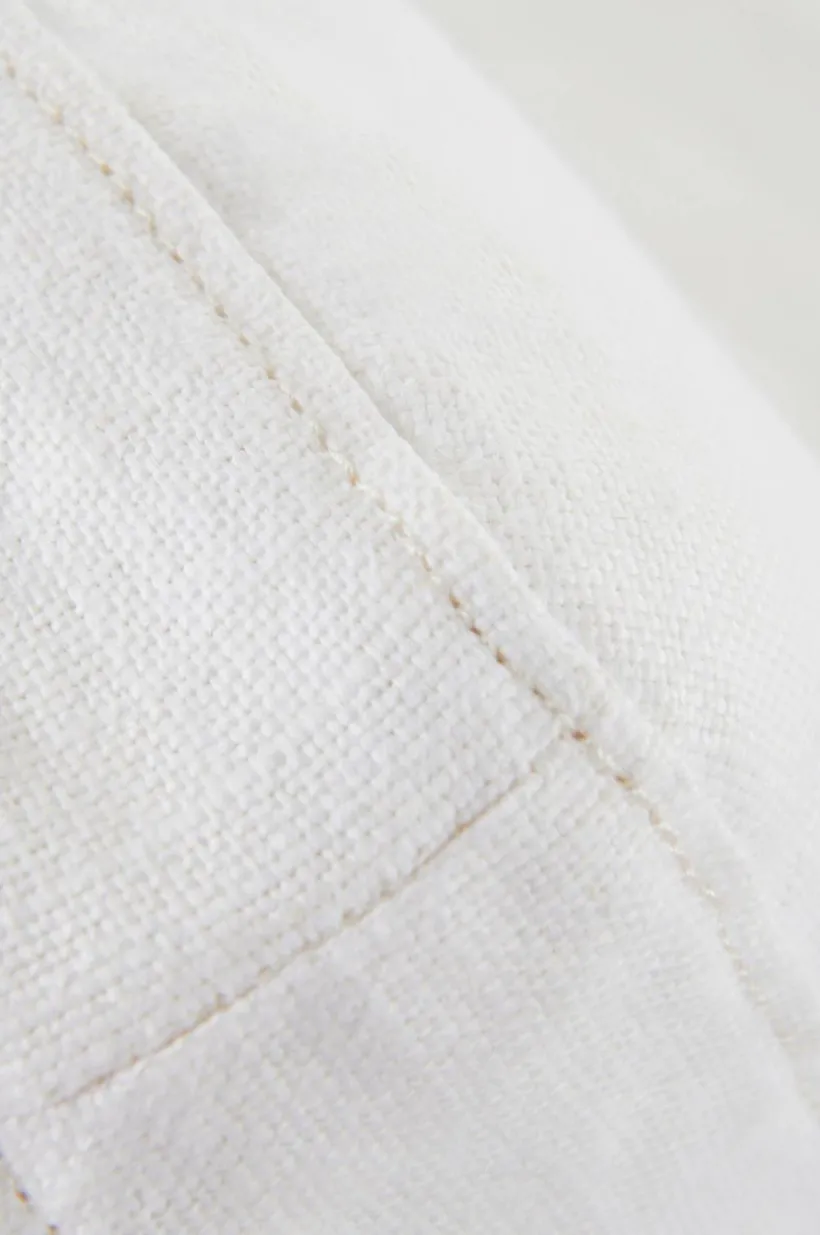 Material: Klädsel 100% lin. Stomme: furu och plywood. Fyllning: 50% dacron, 50% dun och skum.