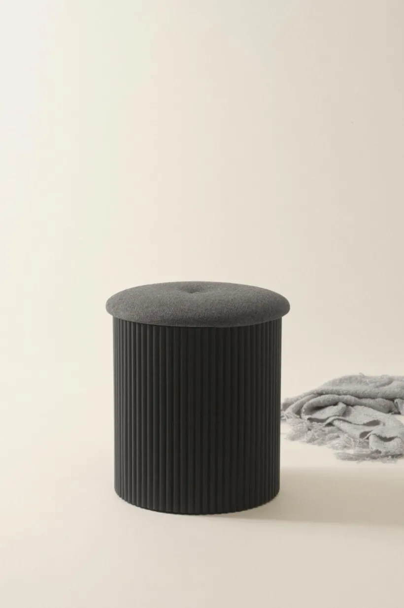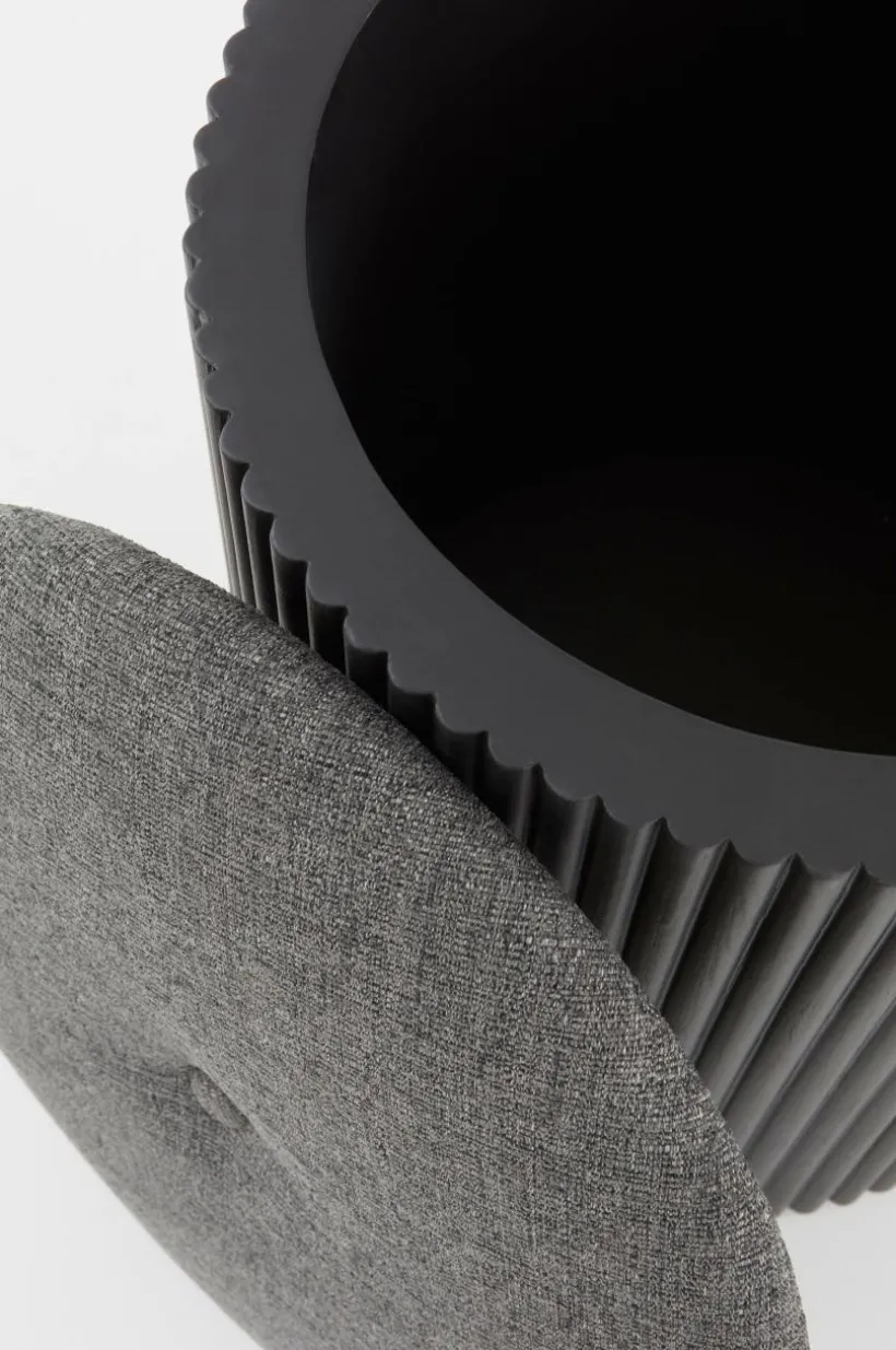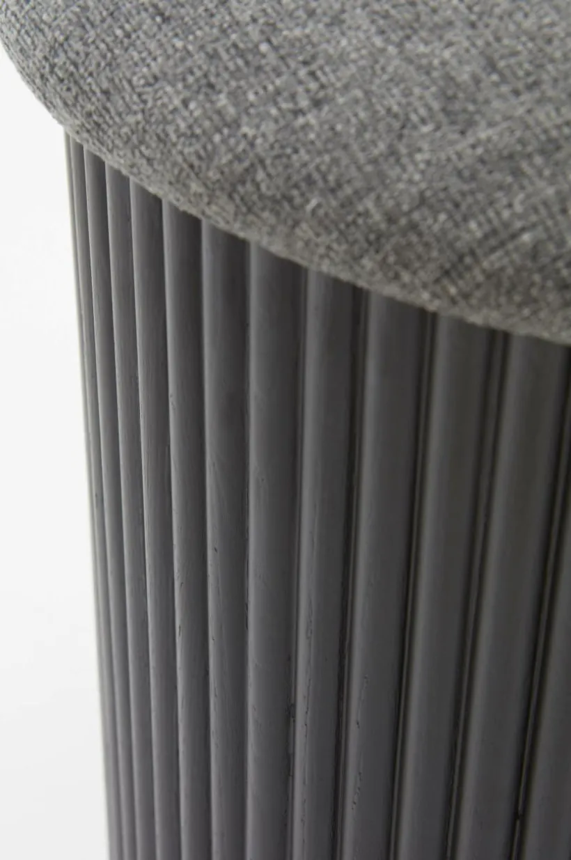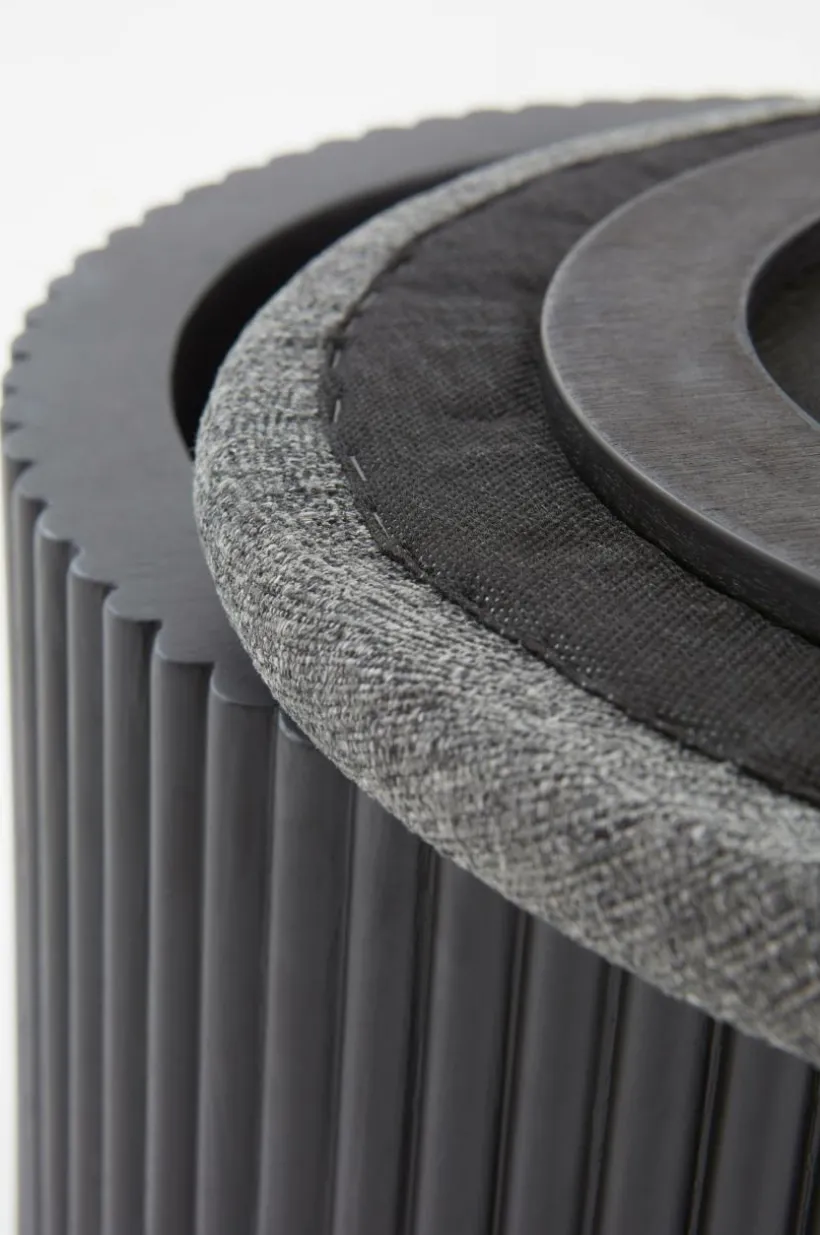 Sittpuff eller pall med mjukstoppad sits och botten av massiv ask som klätts med rundstavar av ask. Toppen som fungerar både som lock och som sits har slitstarkt tyg av polyester med Martindale på 40000. Tyget har vävts med olika trådtjocklek vilket ger struktur och lätt melerad effekt. Sitsen har en mjuk skumfyllning och dekorativ, djuphäftad knapp i mitten. När du lyfter av toppen har du praktiskt förvaringsutrymme i pallen. Pallen är välarbetad och trästommen har klätts med halverade rundstavar som skapar en snygg utsida. DARWIN är en flexibel och mycket användbar möbel. Den gör sig perfekt i hallen, kanske med förvaring av mössor och vantar? I vardagsrummet får du en pall eller puff som också agerar förvaring av mysiga plädar till exempel. Med din kreativitet kommer DARWIN få mängder av användningsområden i ditt hem. Extra sittplatser är alltid bra att ha.