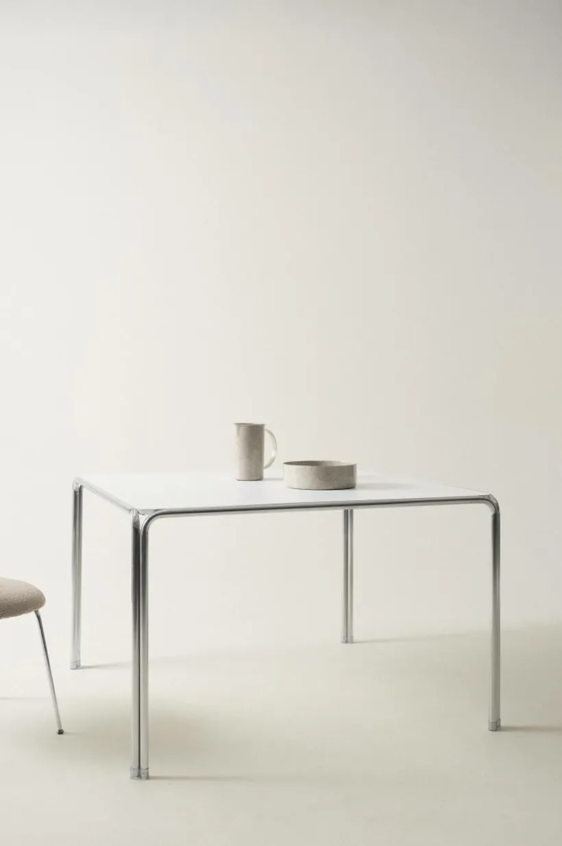 Stilrent, kvadratiskt matbord med bordsskiva av MDF och metallben av järn. DAYTON är ett klassiskt bord med härlig 80-talskänsla, lackad topp och kromade ben. Lacken är vattenbaserad. Det kvadratiska bordet ger trevliga middagar där alla runt bordet får kontakt med alla, och upplevelsen att sitta på rad uteblir. Viss montering krävs. Monteringsanvisning medföljer.