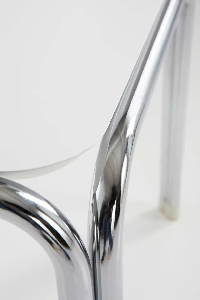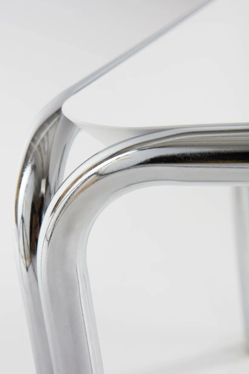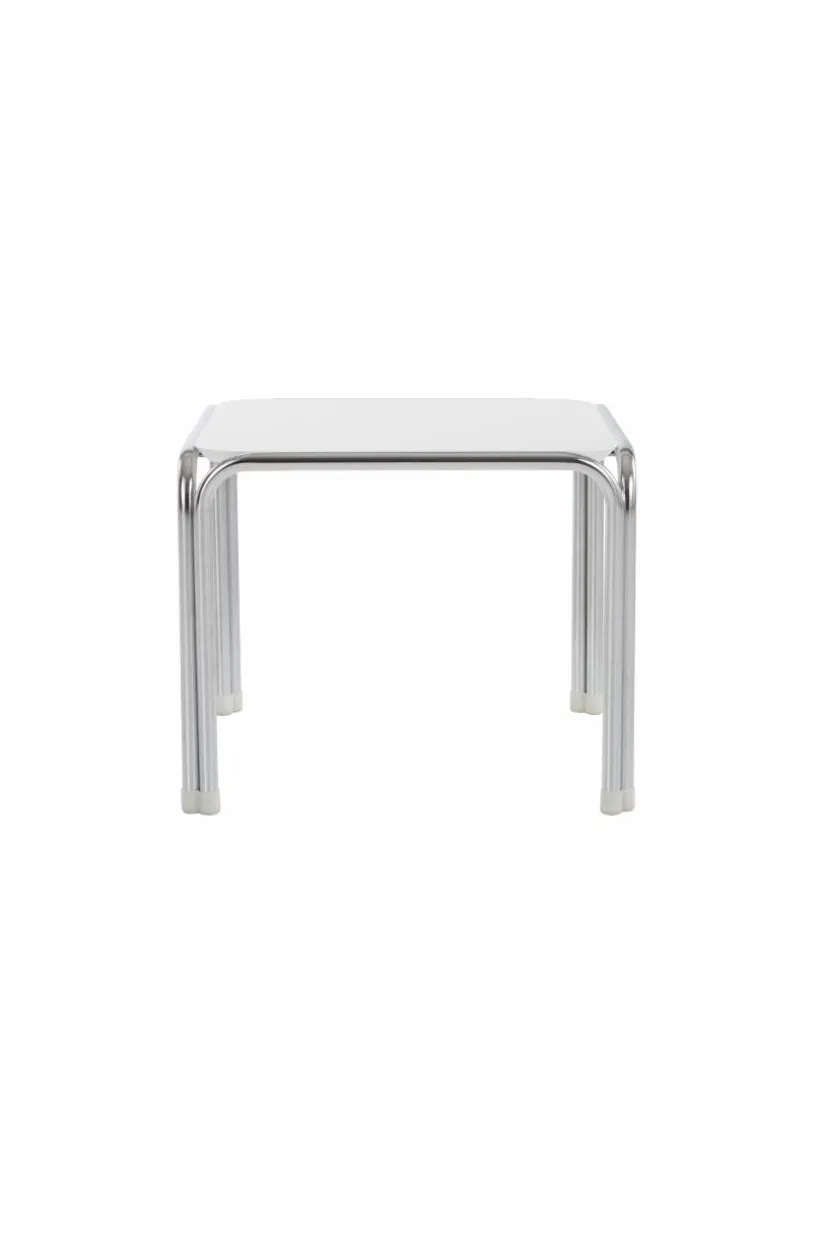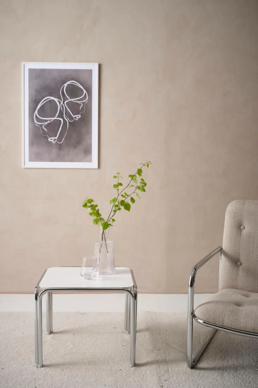 Stilrent sidobord med bordsskiva av MDF och metallben av järn. DAYTON är ett klassiskt bord med en härlig 80-talskänsla, lackad topp och kromade ben. Lacken är vattenbaserad. Viss montering krävs. Monteringsanvisning medföljer.