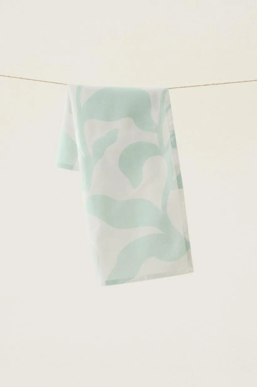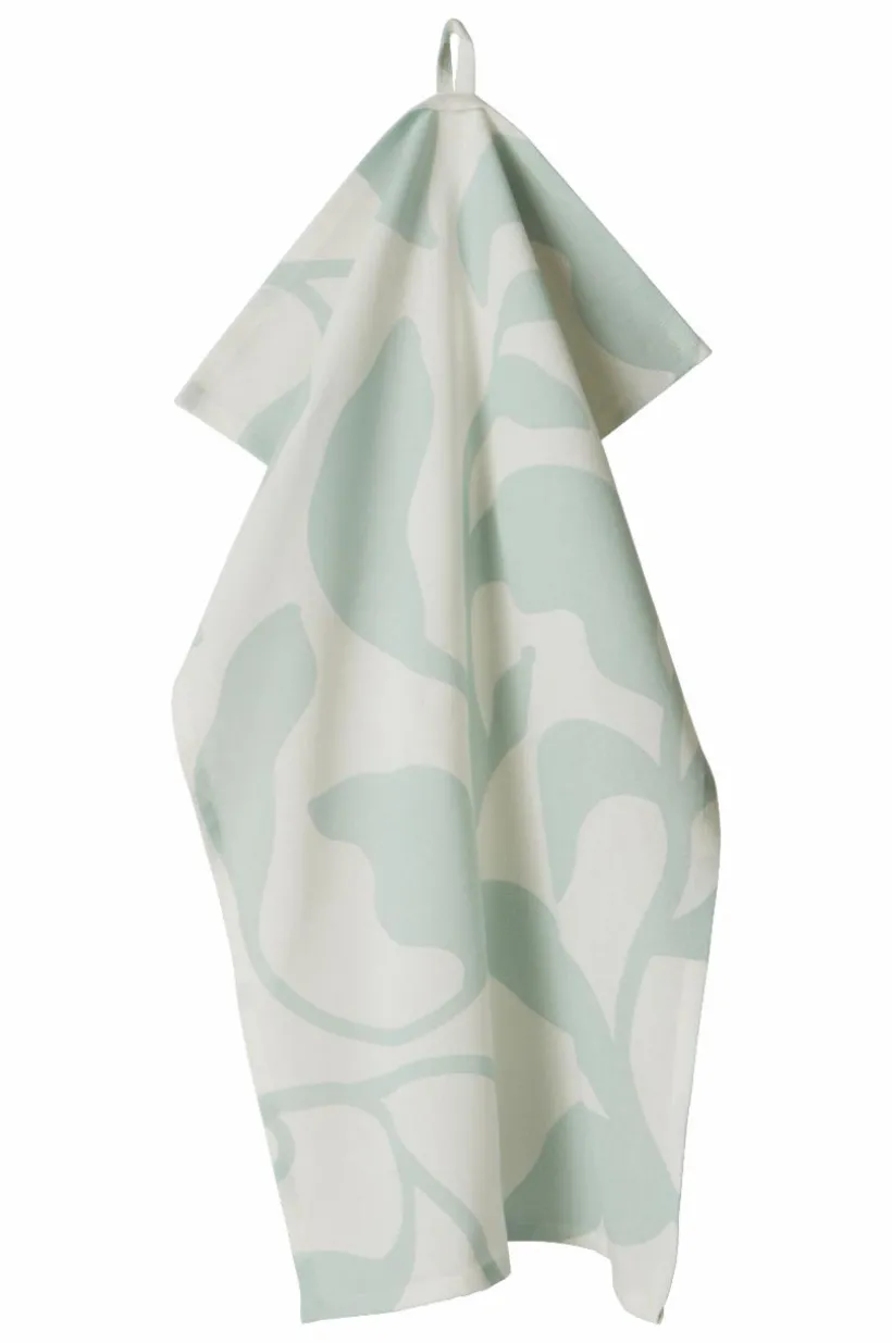 1-pack kökshanddukar i halvpanama av bomull. Delarna i programmet DELLA har charmigt bladmönster i somrig färg tryckt på vit botten. Tygets gramvikt 170 g/m².