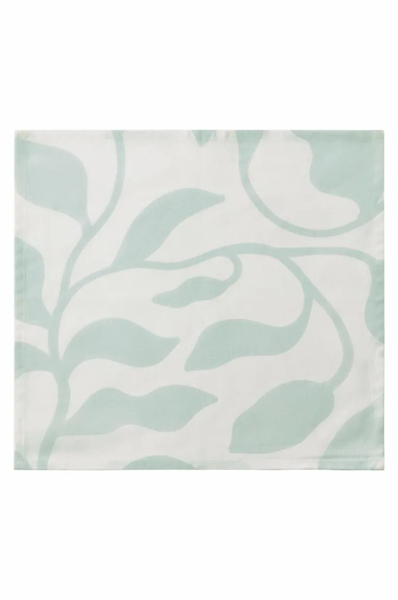 4-pack servetter i halvpanama av bomull. Delarna i programmet DELLA har charmigt bladmönster i somrig färg tryckt på vit botten. Tygets gramvikt 170 g/m².