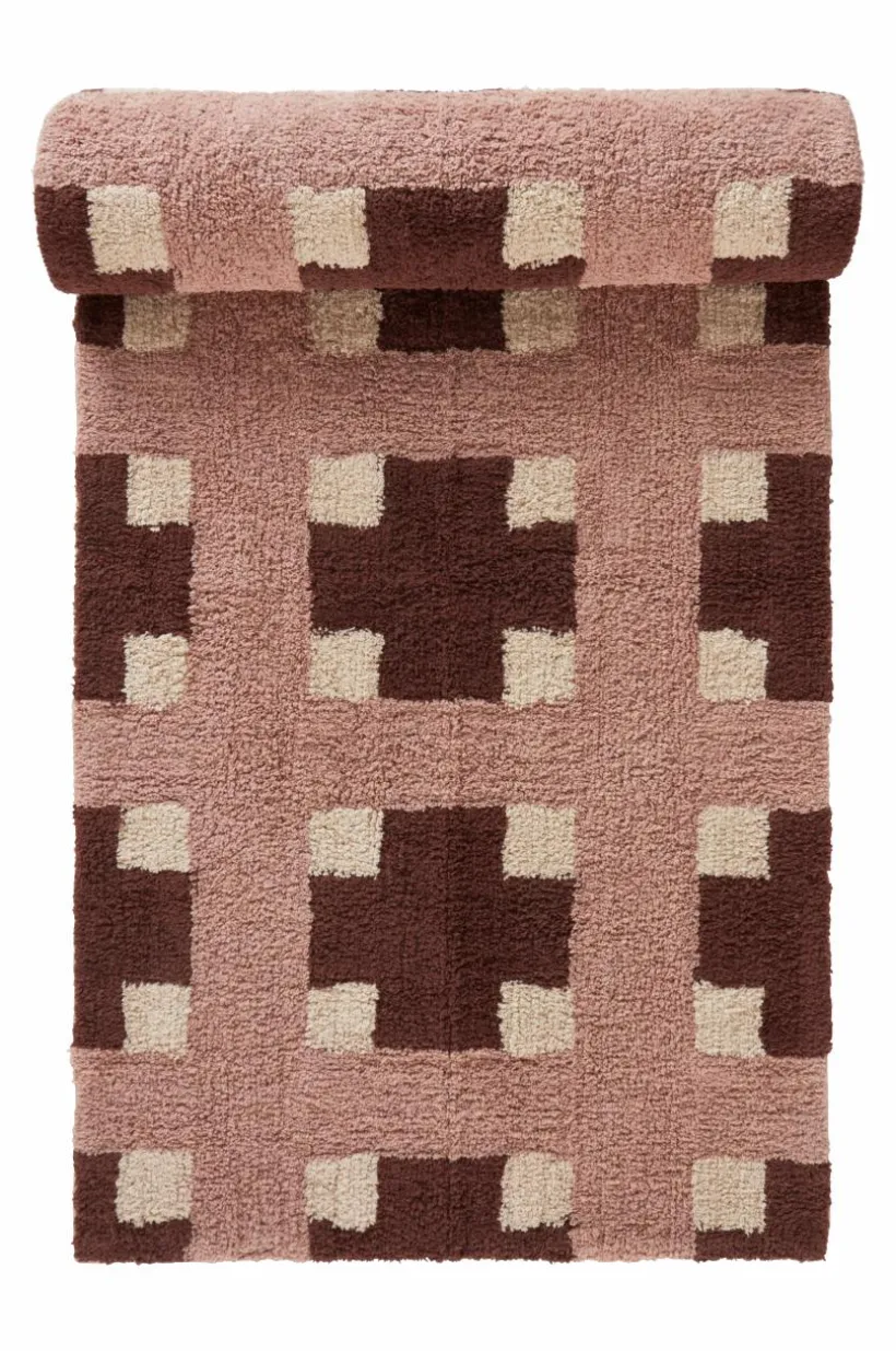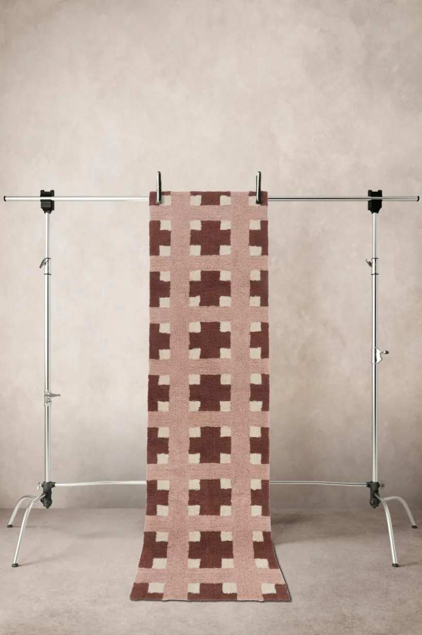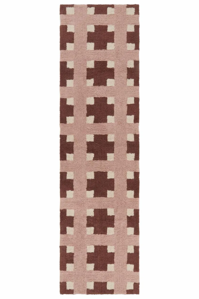 DELPHI, en tuftad gångmatta i bomull, inger komfort med sin mysiga lugg. Den har ett fantastiskt geometriskt mönster som drar blickarna till sig och förankrar varje rum med stil. Perfekt för att ge din heminredning en touch av värme och elegans.