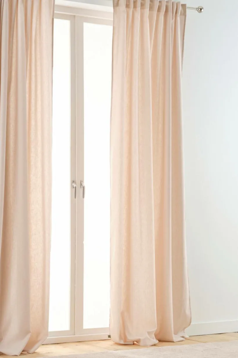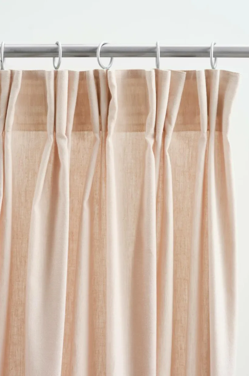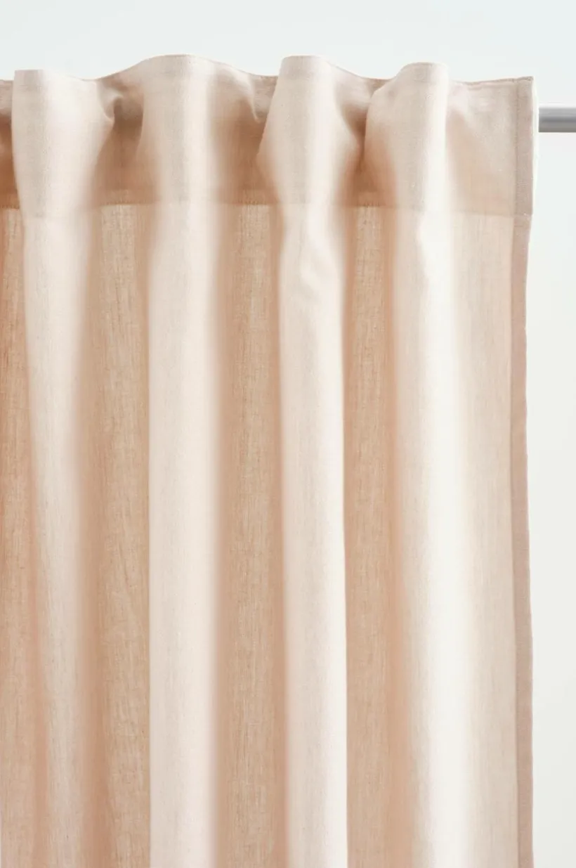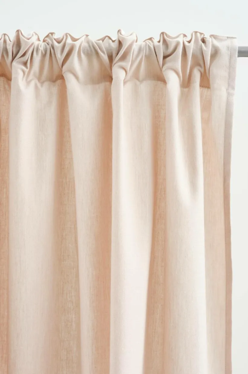 Två gardinlängder i ekologisk bomull och med påsytt multifunktionsband. Gardinen kan hängas upp med fingerkrokar, kanal samt dold hälla. Kollektionen DEMIE är sydd i en härlig bomullskvalité och du kan enkelt förnya ditt kök.