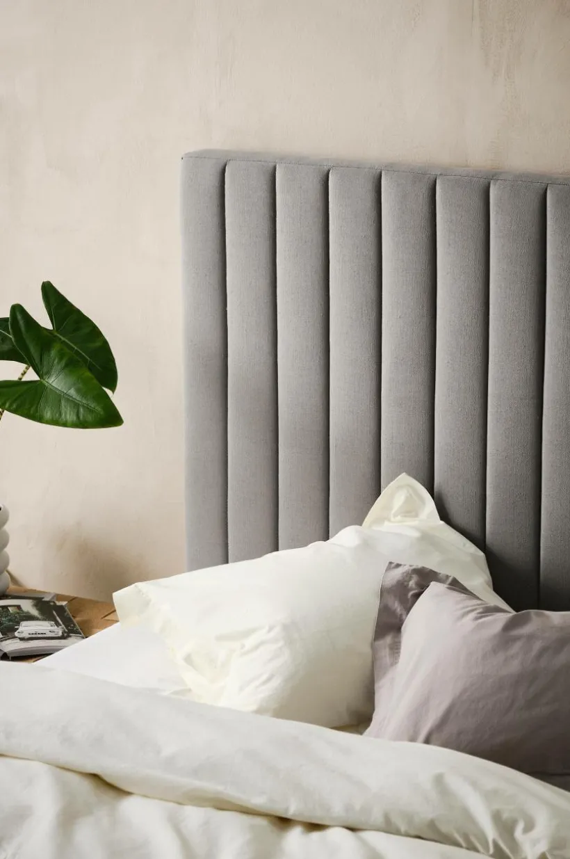 Förnya ditt sovrum och skapa en lyxig känsla med DERBY som är en fristående, mjukstoppad sänggavel klädd med ett mjukt linnemixtyg med lodräta quiltsömmar. Väggfästen medföljer.
