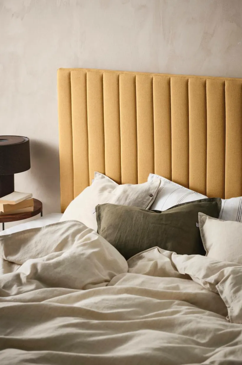 Förnya ditt sovrum och skapa en lyxig känsla med DERBY som är en fristående, mjukstoppad sänggavel klädd med ett mjukt linnemixtyg med lodräta quiltsömmar. Väggfästen medföljer.