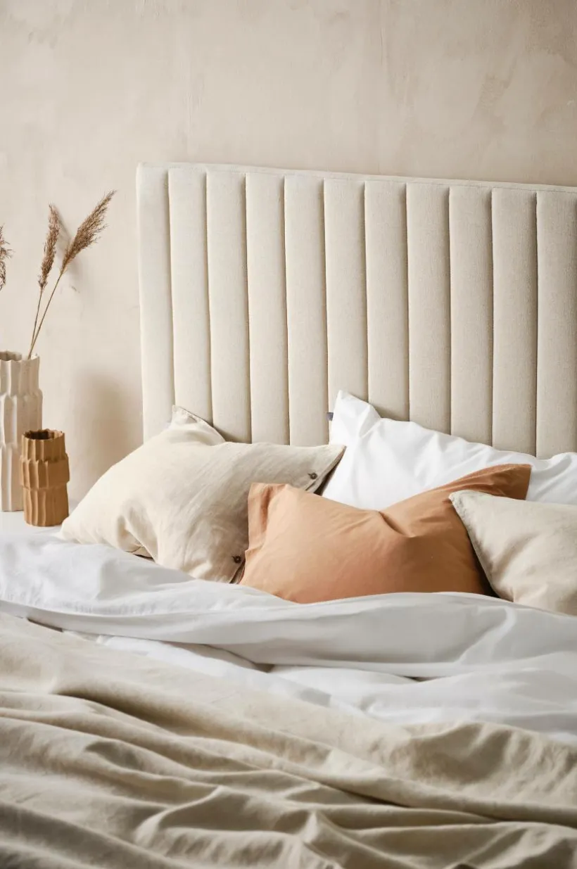 Förnya ditt sovrum och skapa en lyxig känsla med DERBY som är en fristående, mjukstoppad sänggavel klädd med ett mjukt linnemixtyg med lodräta quiltsömmar. Väggfästen medföljer.
