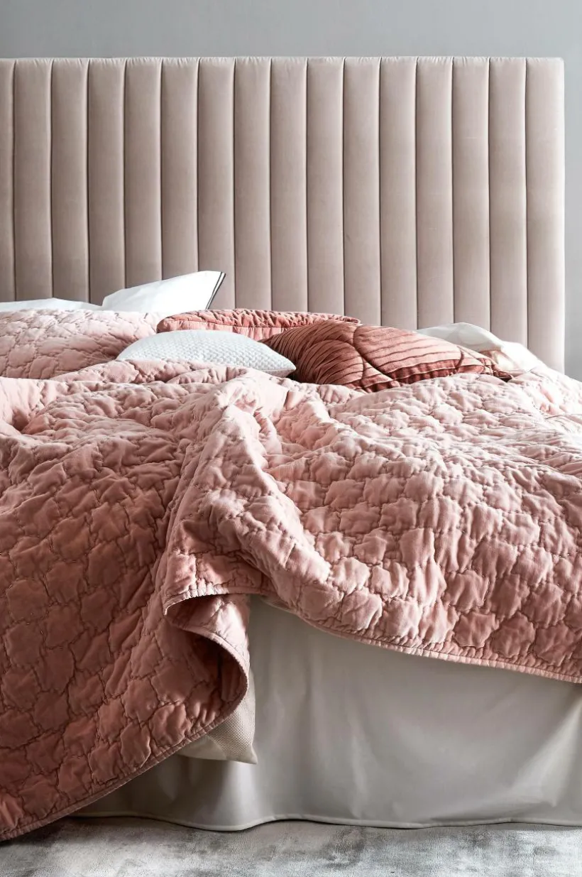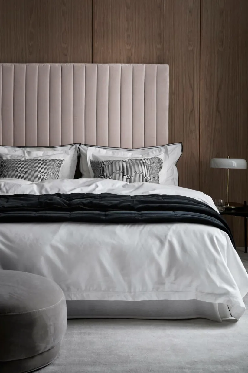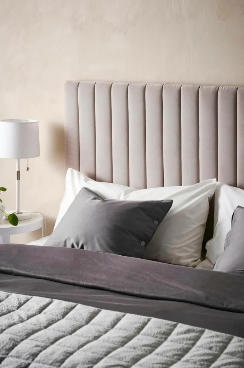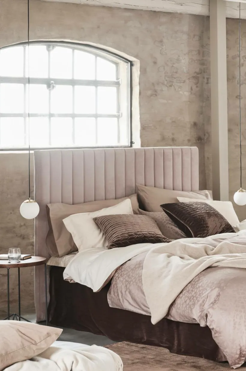 Förnya ditt sovrum och skapa en lyxig känsla med DERBY som är en fristående sänggavel i mjuk sammet med lodräta quiltsömmar. Väggfästen medföljer. Tygets slitstyrka är på 28000 Martindale.