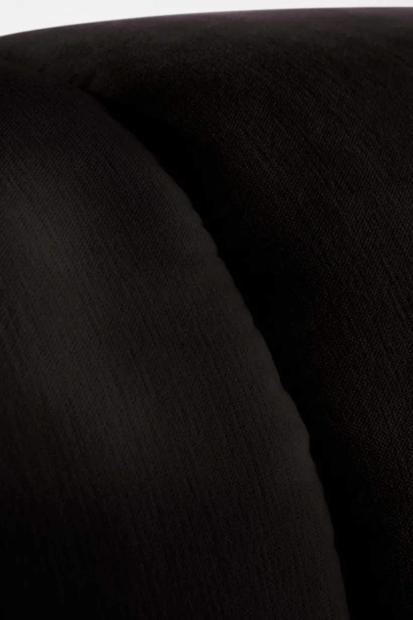 Sänggavel som är mjuk och rund i formen, mycket generös och inbjudande. Sänggaveln är mjukt vadderad och klädd med ett neutralt och lättmatchat, enfärgat polyestertyg, lodräta sömmar gör sängen riktigt snygg. Allt trä i sängen är FSC-certifierat. Stommen är tillverkad av furu och plywood. Denna sänggavel har inte väggfäste, men den står stabilt. Madrass/resårmadrass ingår ej.