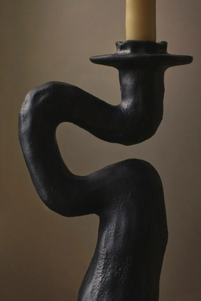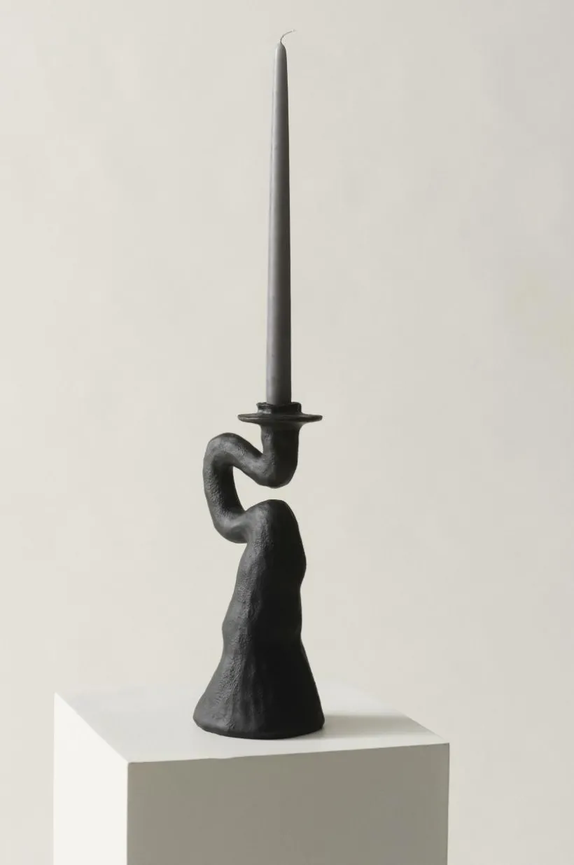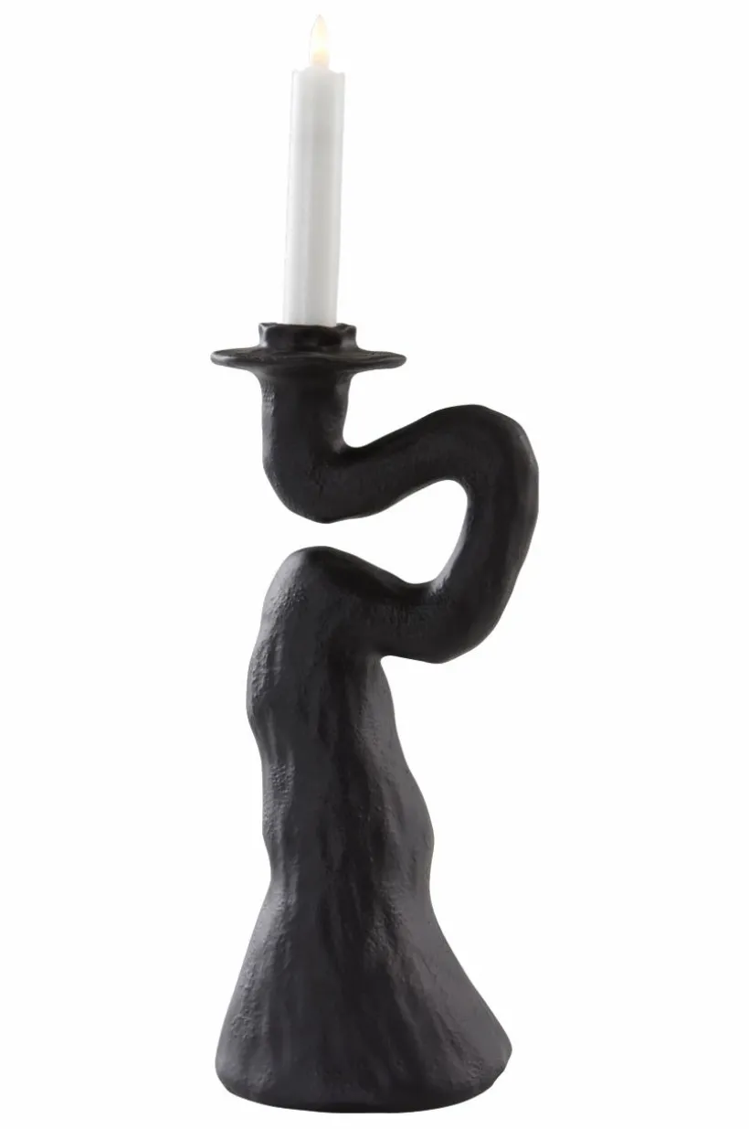 Handgjord ljusstake av polyresin i en mjukt följsam och böljande form som för tanken till naturen. Ljusstaken är stor och pampig och den passar till både levande ljus och batteridrivna ljus. Ljus medföljer ej.