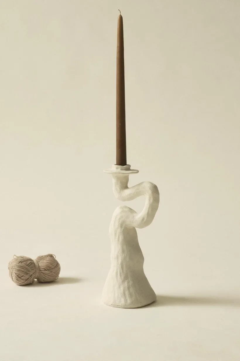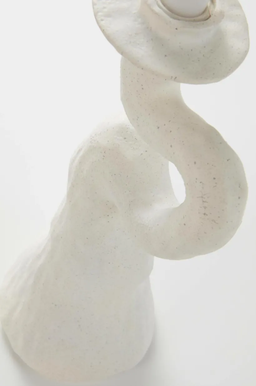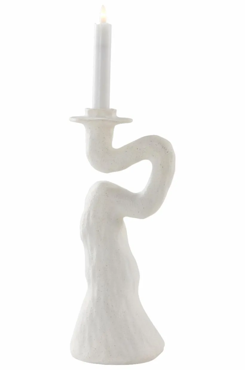 Handgjord ljusstake av polyresin i en mjukt följsam och böljande form som för tanken till naturen. Ljusstaken är stor och pampig och den passar till både levande ljus och batteridrivna ljus. Ljus medföljer ej.