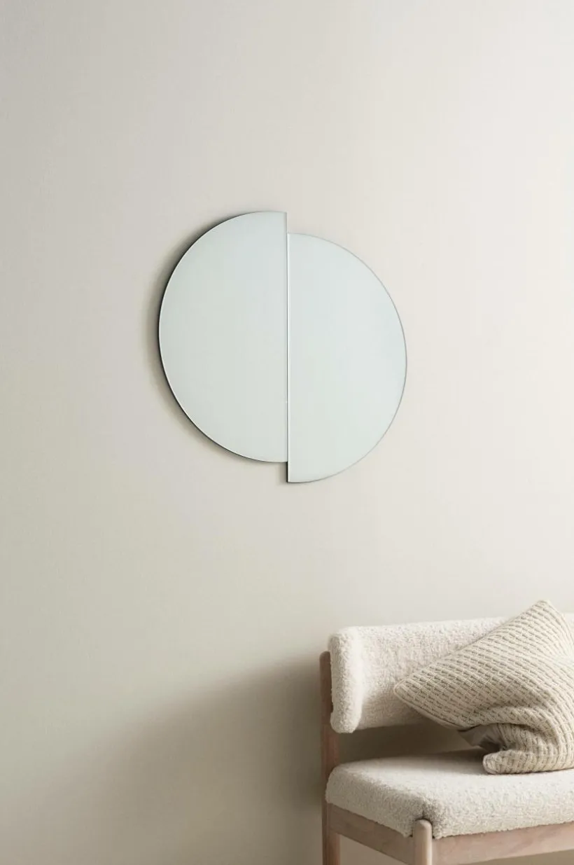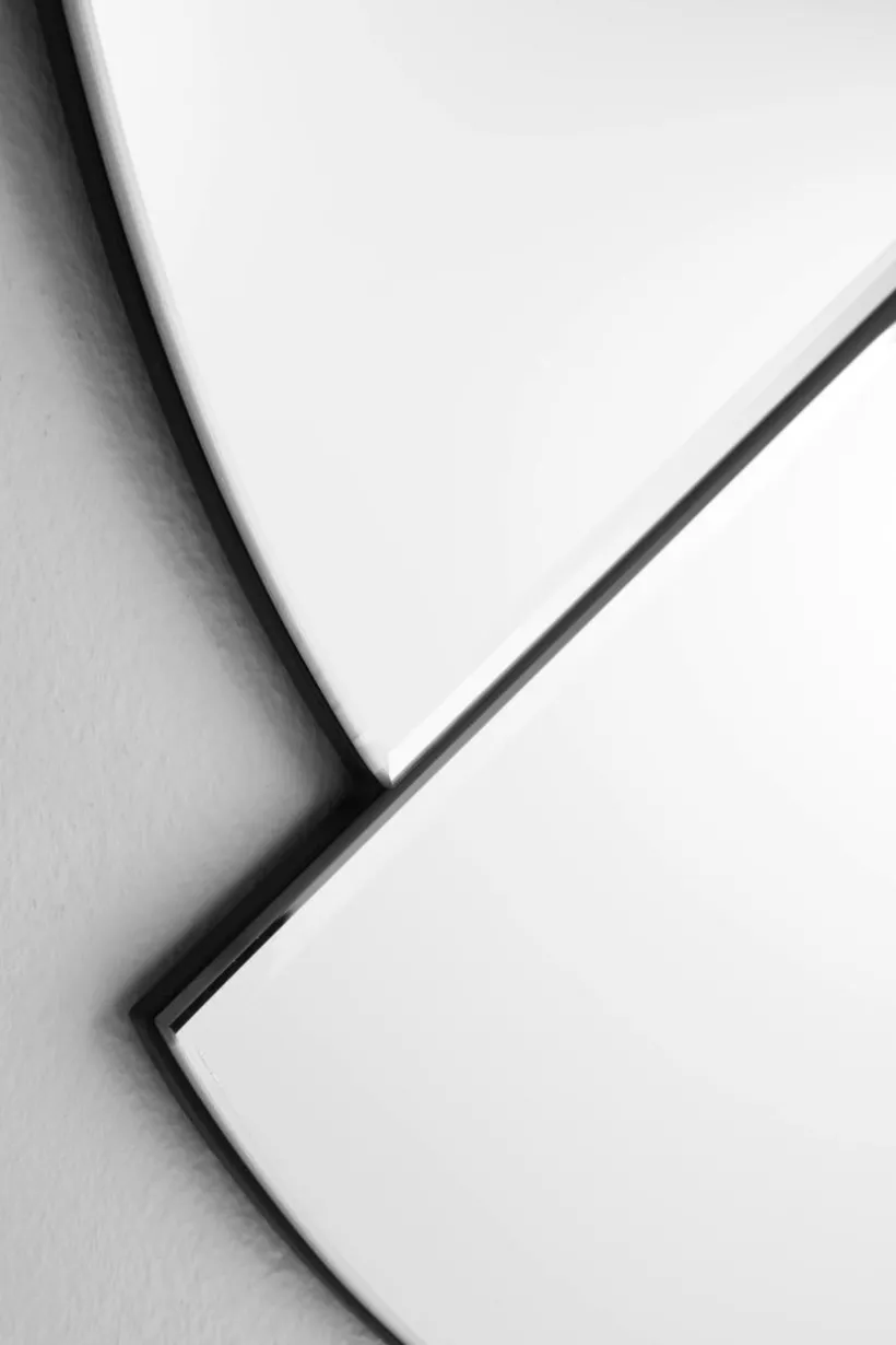 DIVIDE är en spegel i spännande form. Spegeln är stilren utan ram, MDF-baksidan utgör en svart kant från sidan. Dolda hängare bak.