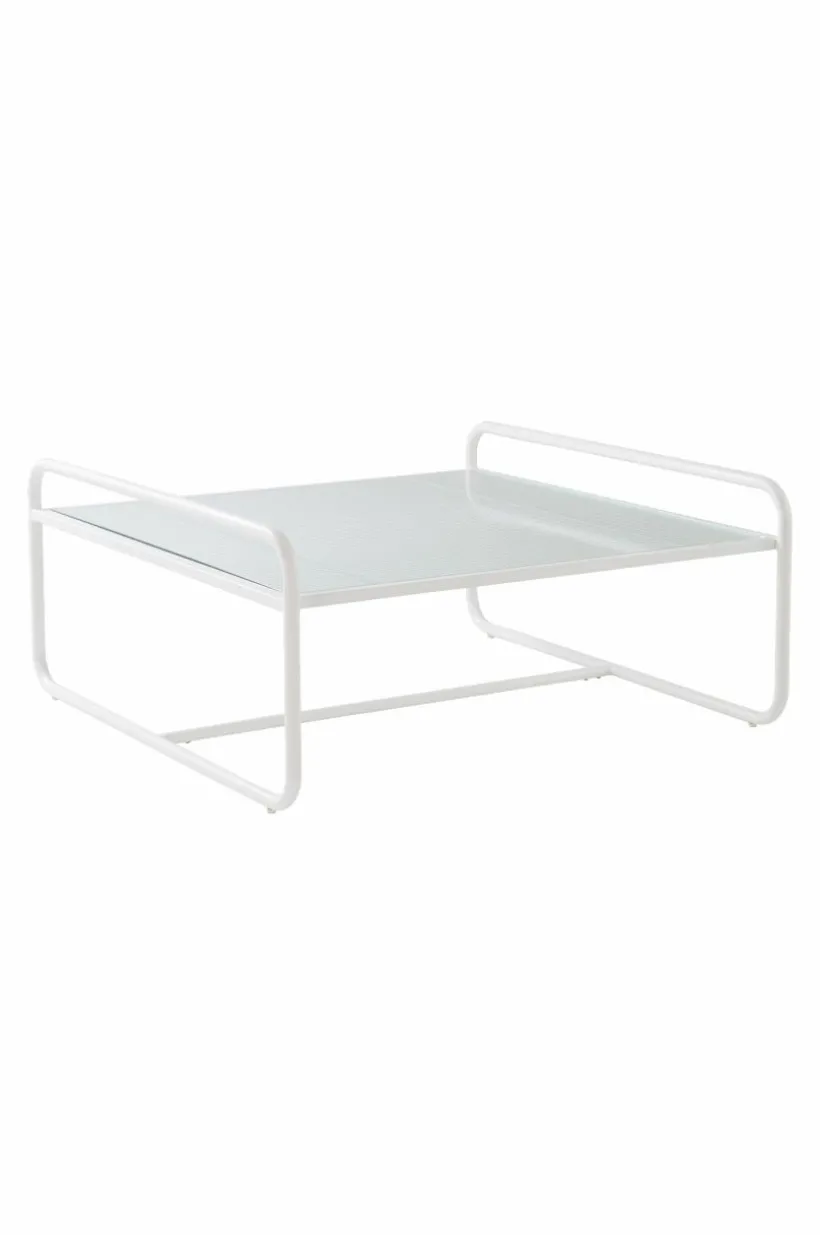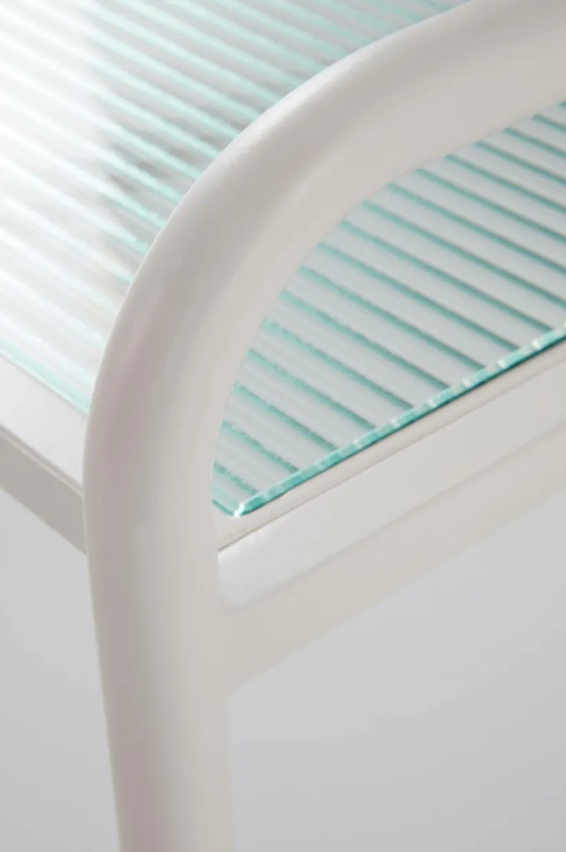 DOMINGO är ett kvadratiskt soffbord med bordsskiva av räfflat glas. Stommen är av stålrör med pulverlackerad alternativt kromad finish. Bordet har härlig 80-talskänsla och känns samtidigt oerhört nytt.