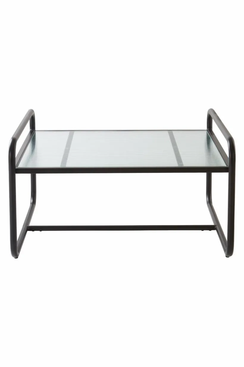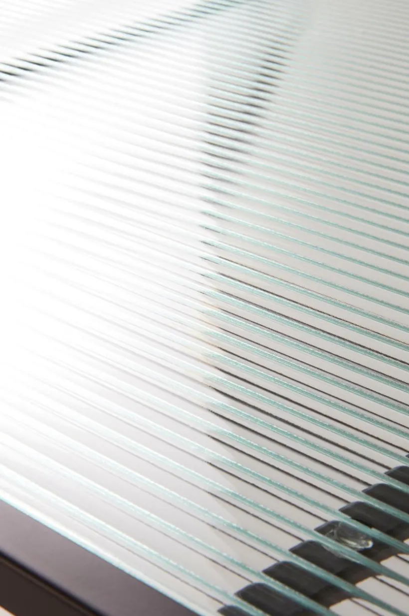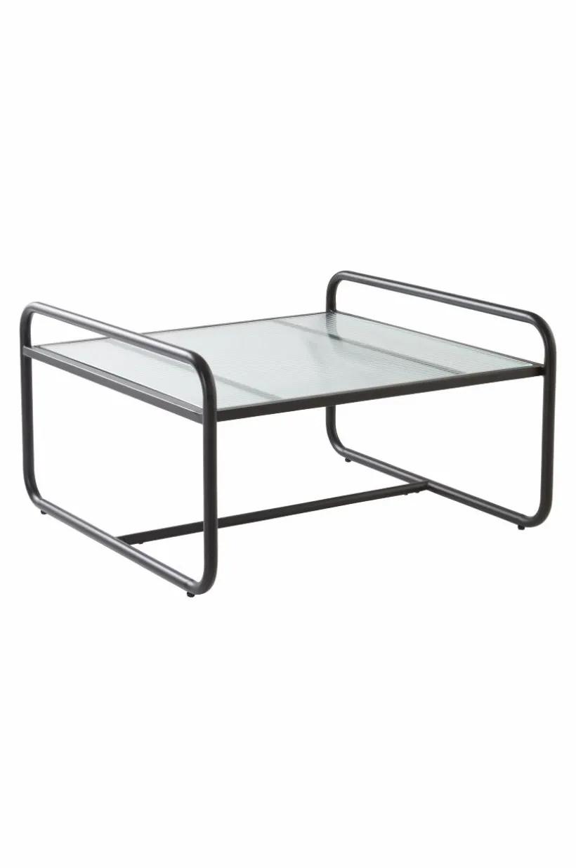 DOMINGO är ett kvadratiskt soffbord med bordsskiva av räfflat glas. Stommen är av stålrör med pulverlackerad alternativt kromad finish. Bordet har härlig 80-talskänsla och känns samtidigt oerhört nytt.