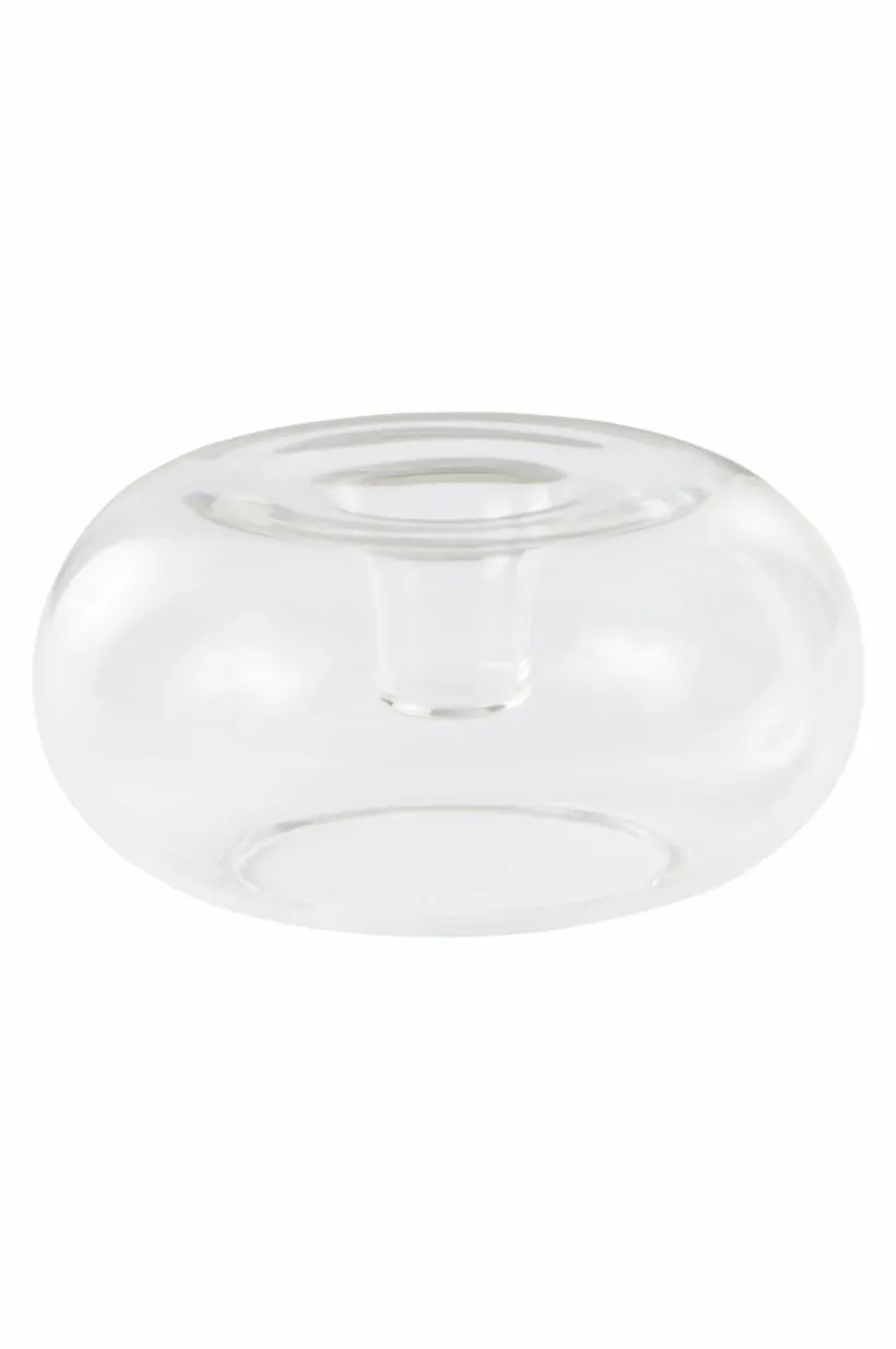 Ljusstake av glas i fina kulörer att välja bland.Den runda ljusstaken har plan botten och står stadigt på bordet. Ljus medföljer ej.