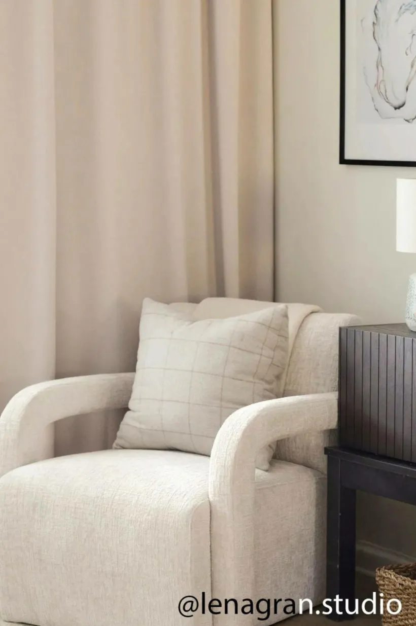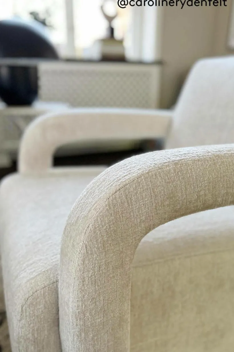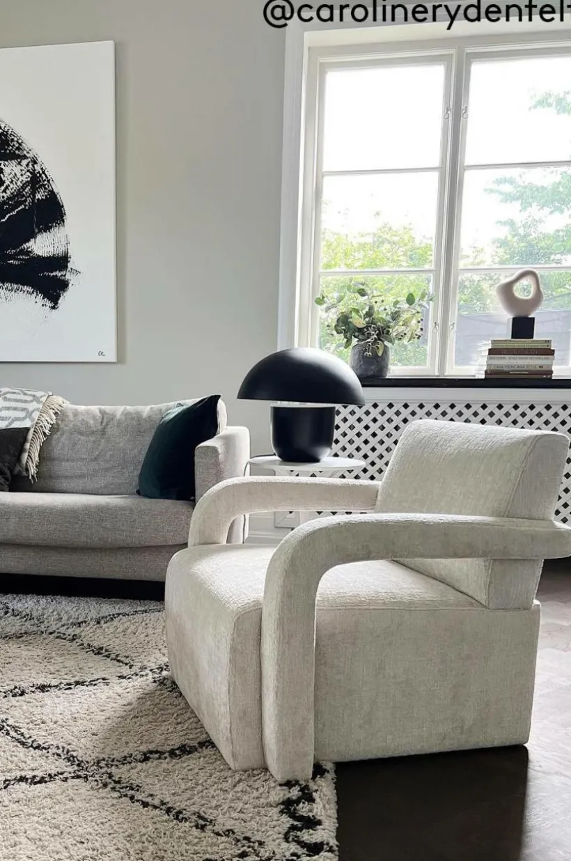 Tips/råd: Fåtöljen tillsammans med en fotpall och en snygg golvlampa blir en perfekt myshörna.