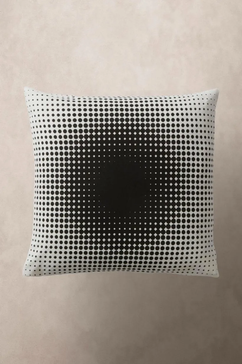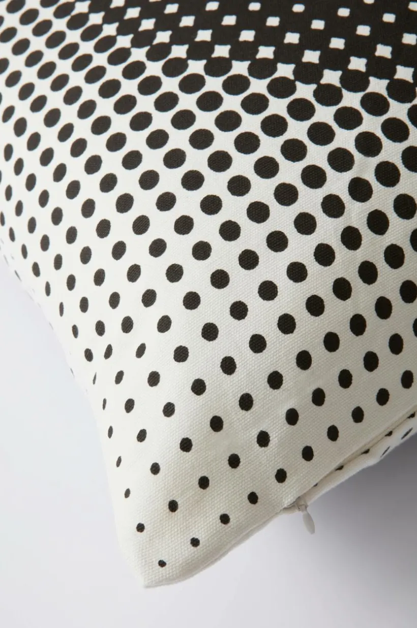 1-pack kuddfodral med tryckt grafiskt prickmönster på naturvit botten. Både framsidan och baksidan är mönstrade. Dragkedja i nederkant.