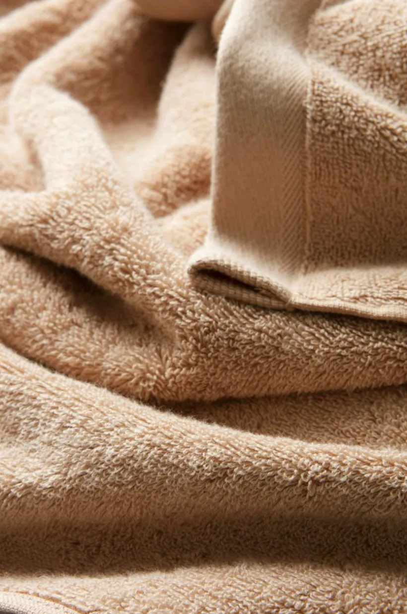 1-pack badhandduk i mjuk frotté av bomull blandat med polyester tillverkad av plast plockad från haven. Den sköna frottén har hög gramvikt, 500 g/m². Frottéserien EARTH är ett mjukt, härligt och vackert val till ditt badrum. Till stranden passar det ju fint när materialet delvis återvinns från haven.