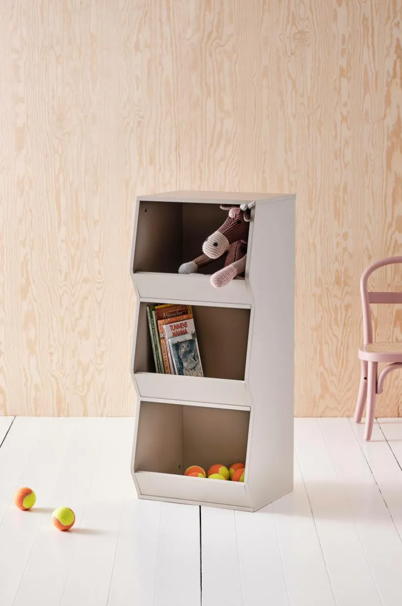 Vägghylla i lackad MDF i en stilren pastellfärgad ton. En snygg, enkel och funktionell förvaring för ett lättstädat barnrum! Hyllan har tre fack för förvaring till allt från böcker och pysselmaterial till gosedjur och leksaksbilar. Funkar även fint som sängbord. Monteras mot vägg.