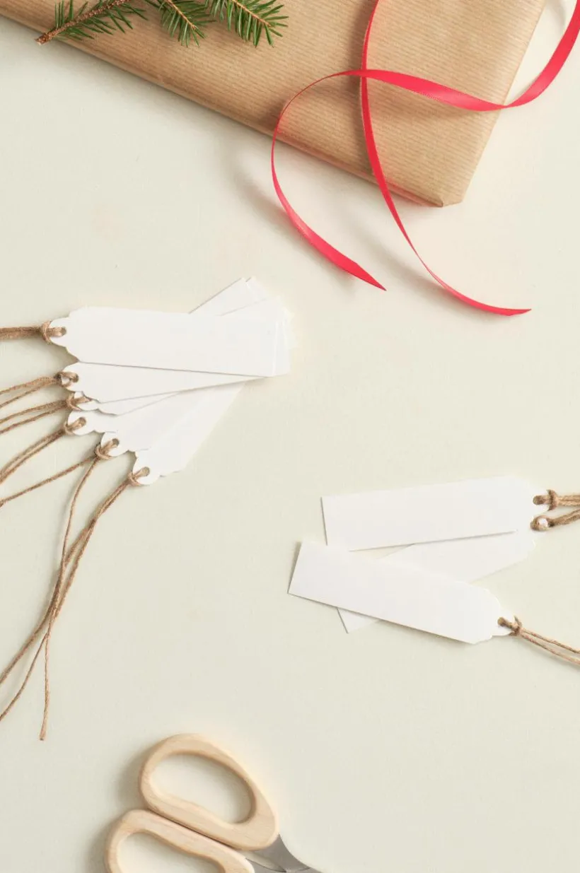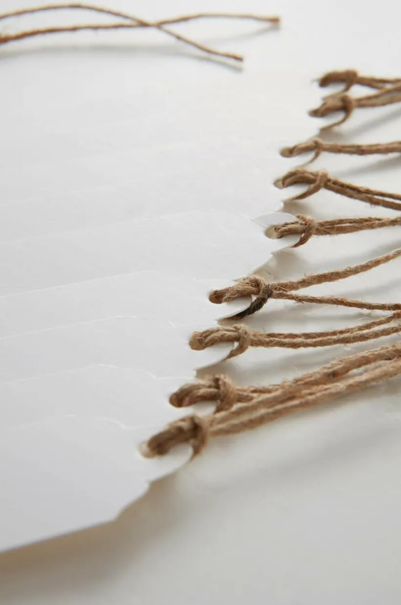 10-pack etiketter av FSC-certifierat kraftpapper. Etiketterna har ett förstärkt hål i ena änden och ett snöre att fästa etiketten med. En fin etikett gör varje present mer personlig.