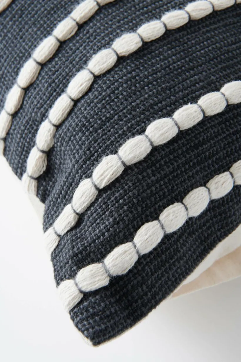 1-pack kuddfodral av handvävd bomull med strukturränder. Dragkedja i nederkant.