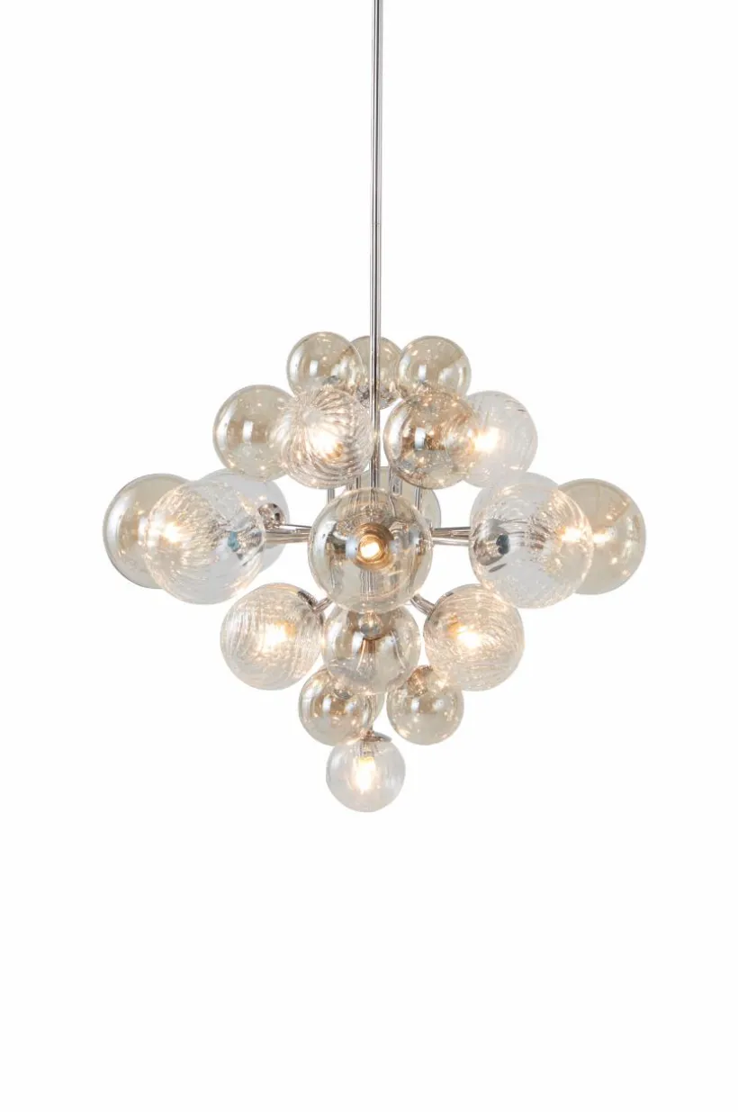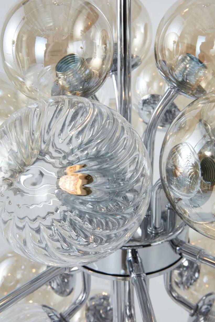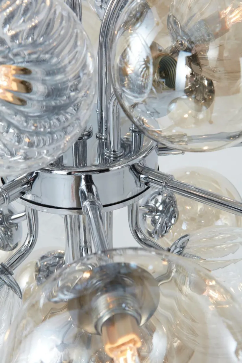Taklampa med stomme av järn med kromad finish och dekorativa glaskupor i klarglas som sprider ett mysigt sken när lampan lyser. Transparent, sladdlängd 0,6 m.