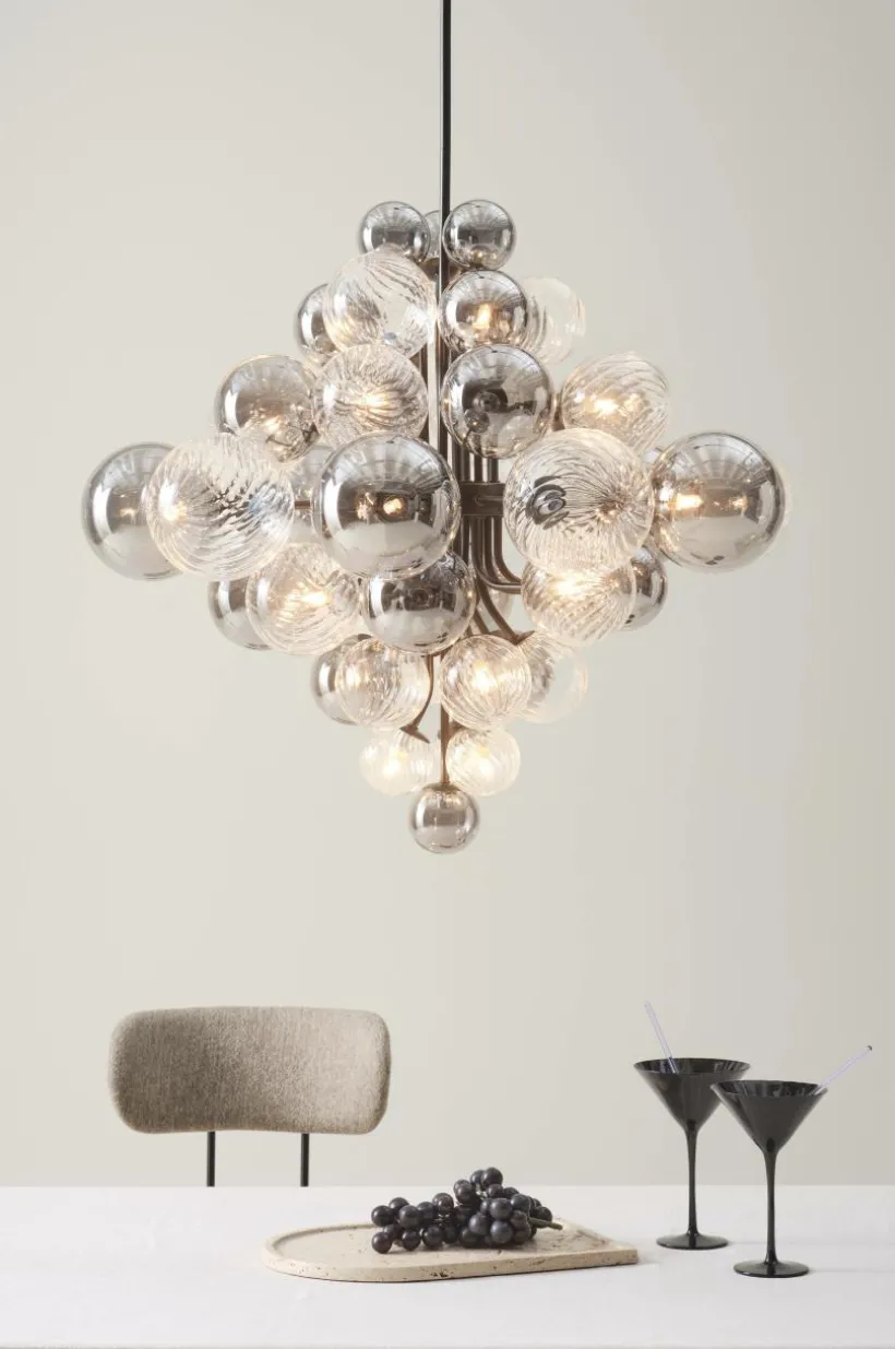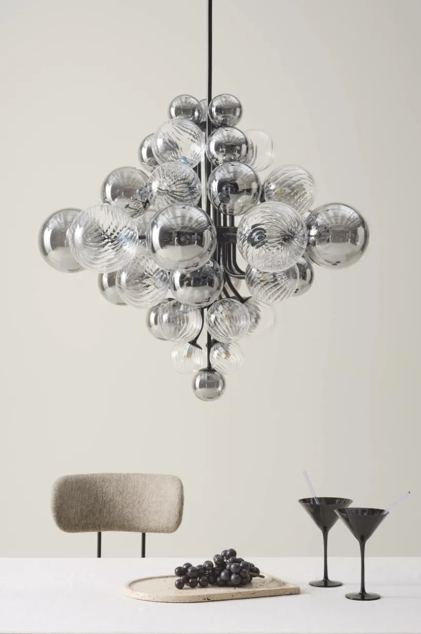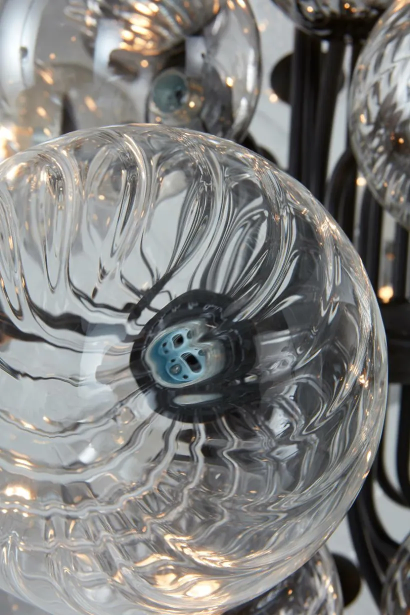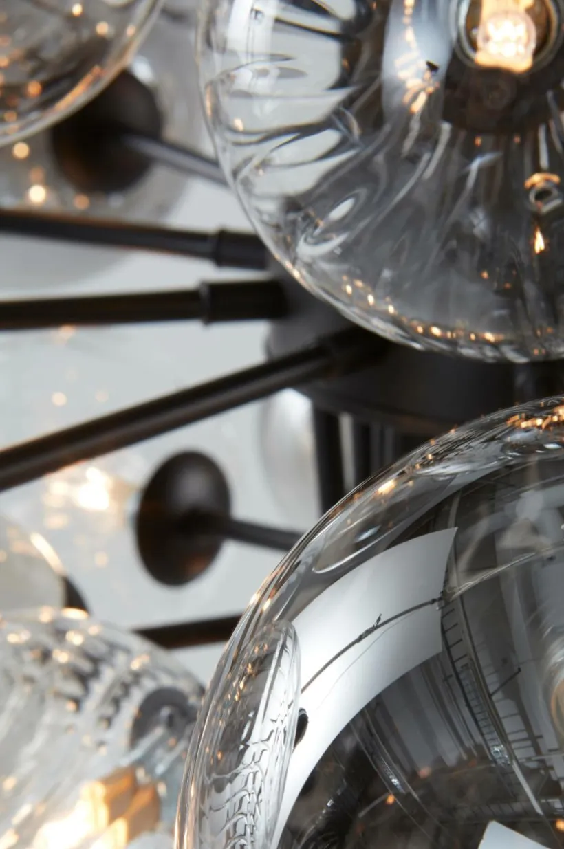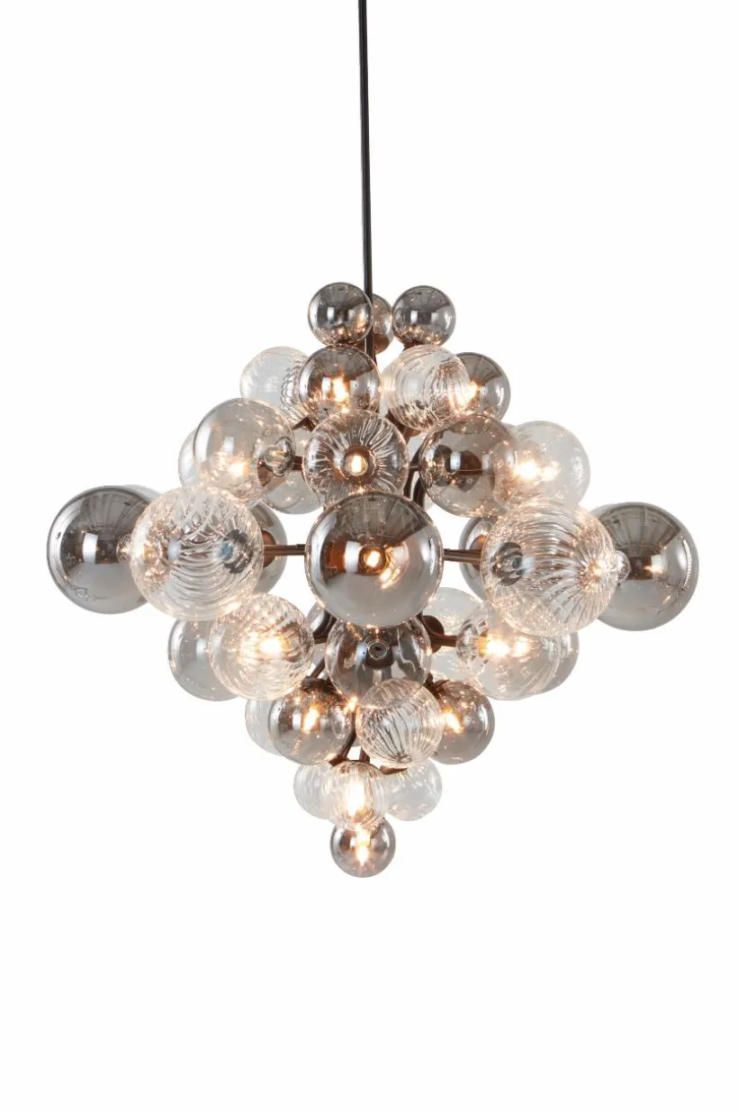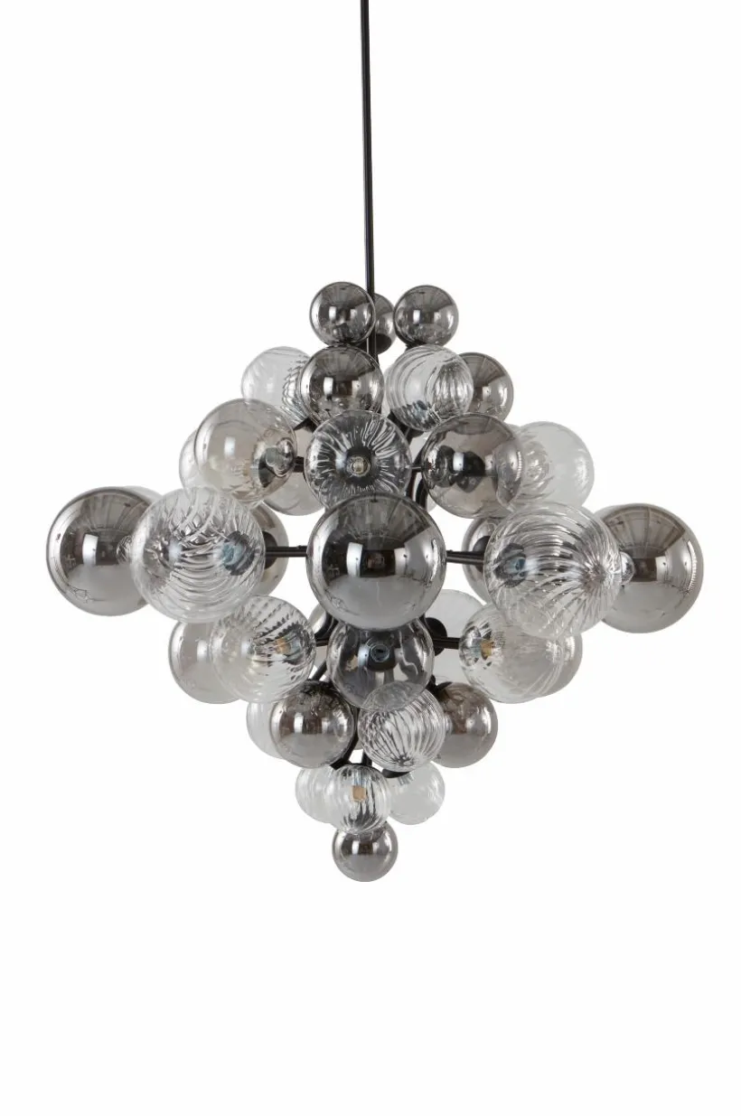 Taklampa med stomme av järn med kromad finish och dekorativa glaskupor i klarglas som sprider ett mysigt sken när lampan lyser. Transparent, sladdlängd 0,72 m. .