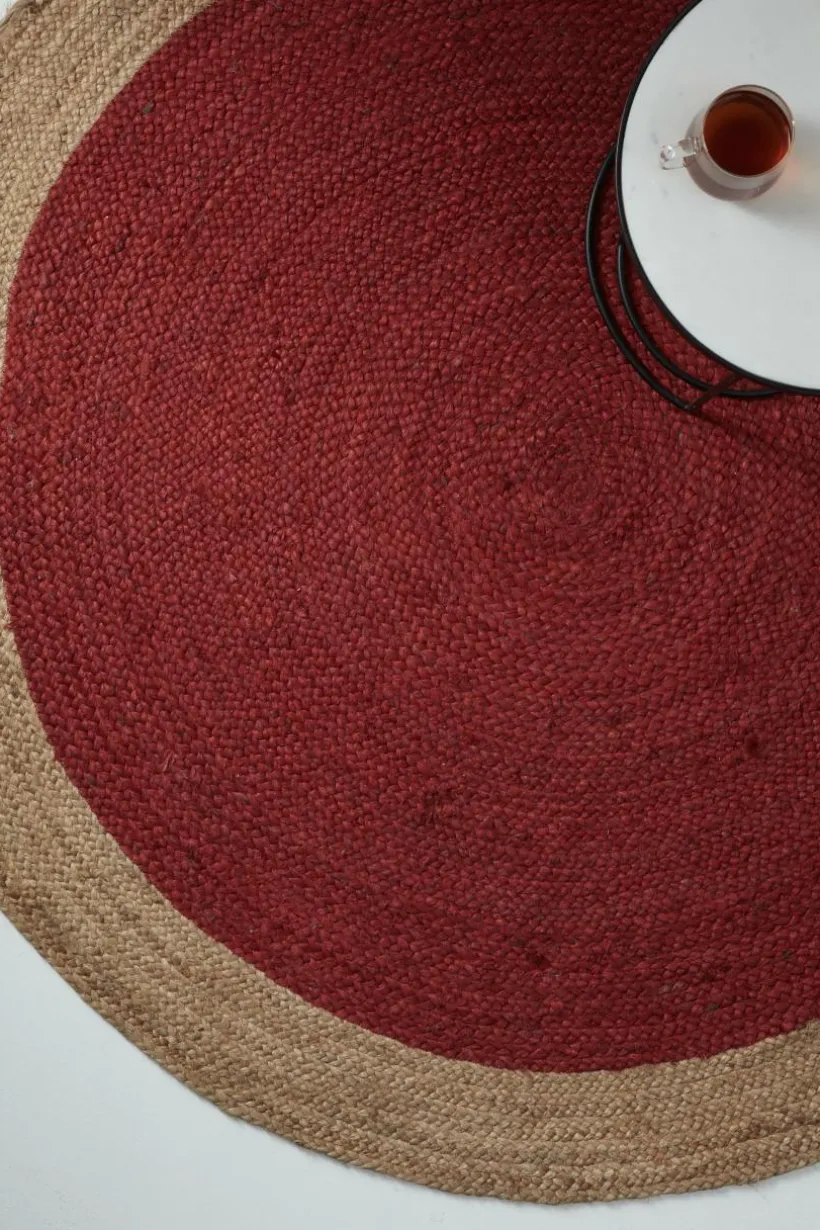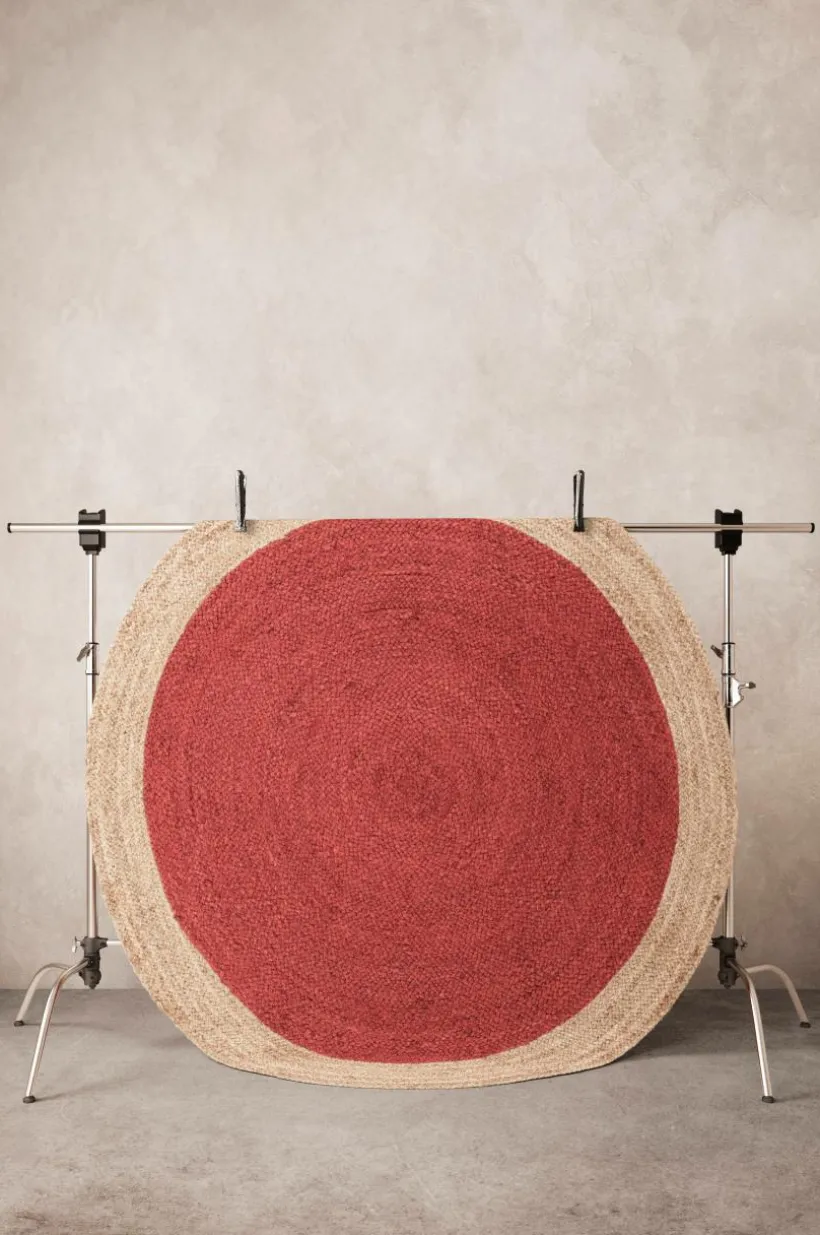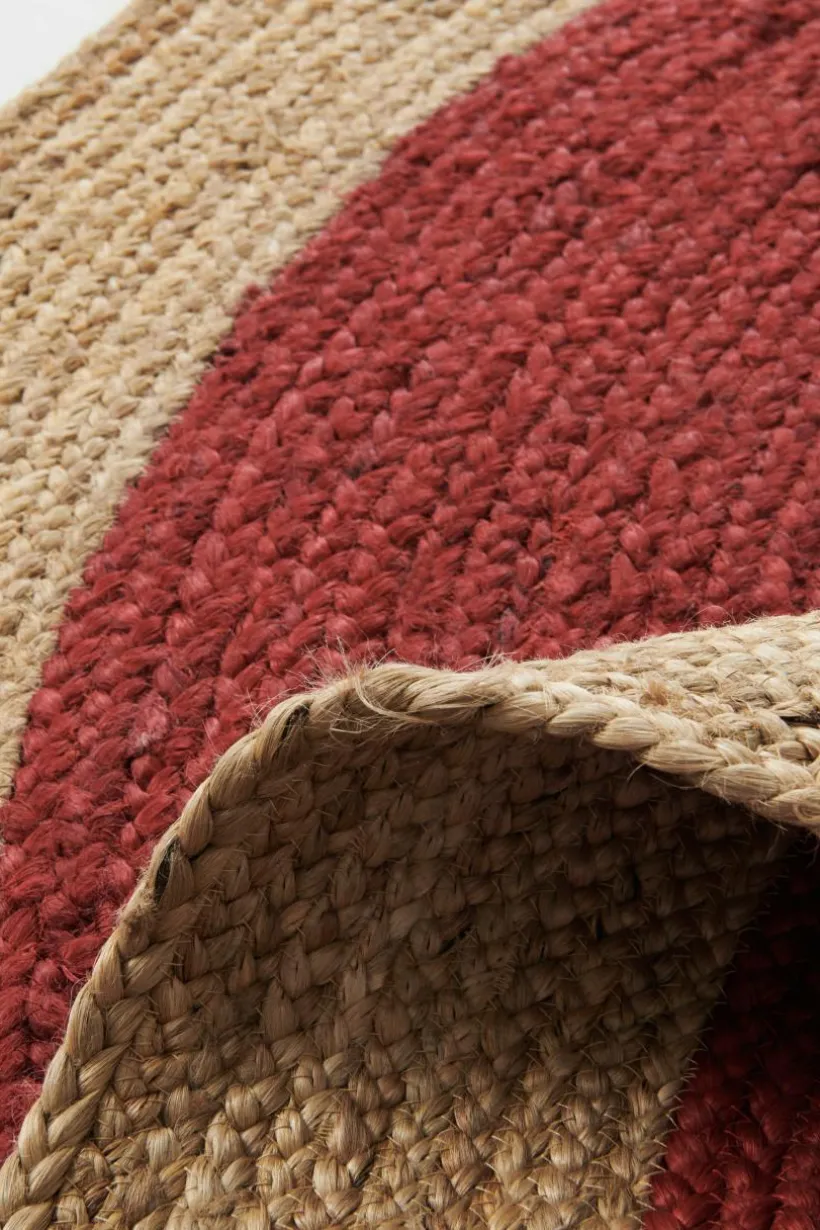Handvävd jutematta med ett cirkulärt mönster i jordnära toner. ELIS gör snabbt ditt rum ombonat och mysigt. 2800 g/m².