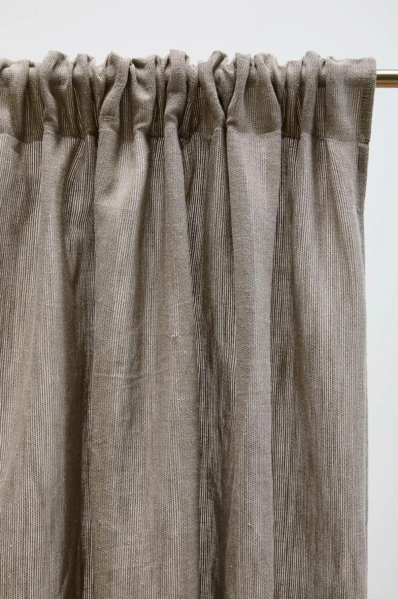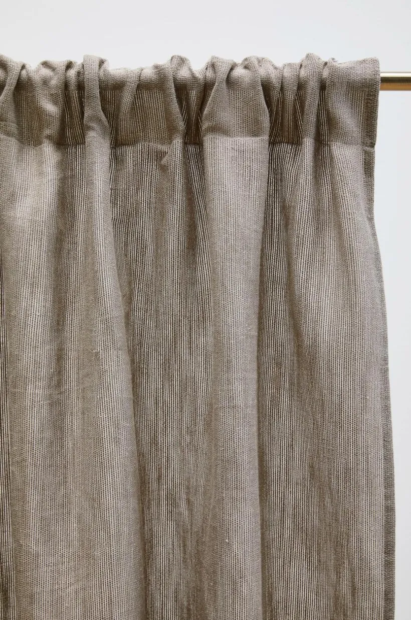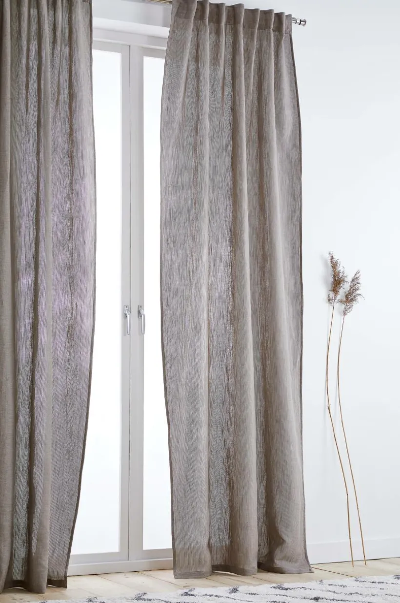 Två enfärgade gardinlängder av bomull och lin med påsytt multifunktionsband. Enfärgat ger ett lugnt och stilrent intryck i ditt hem. Gardinen kan hängas upp med fingerkrokar, kanal samt dold hälla.