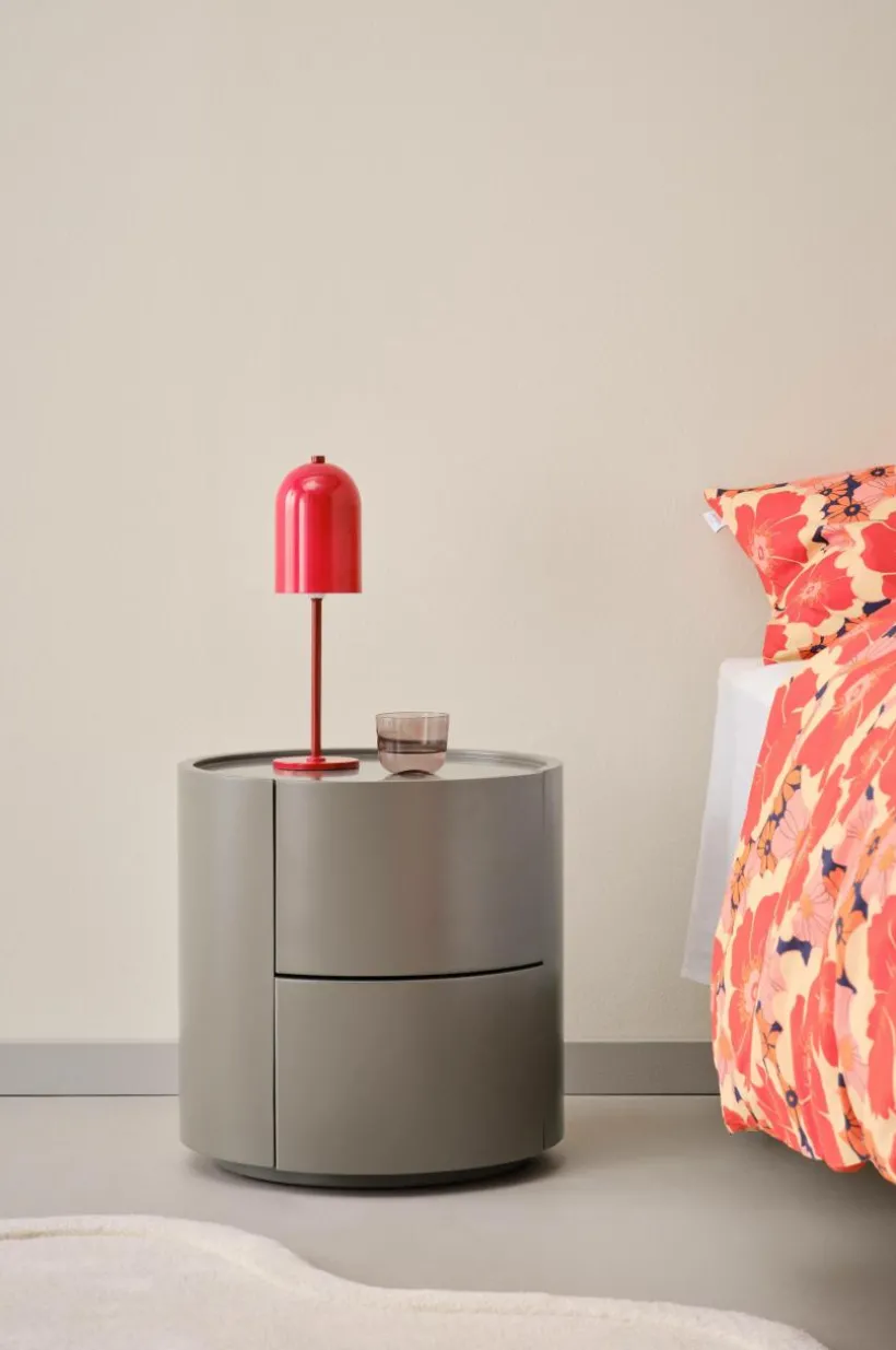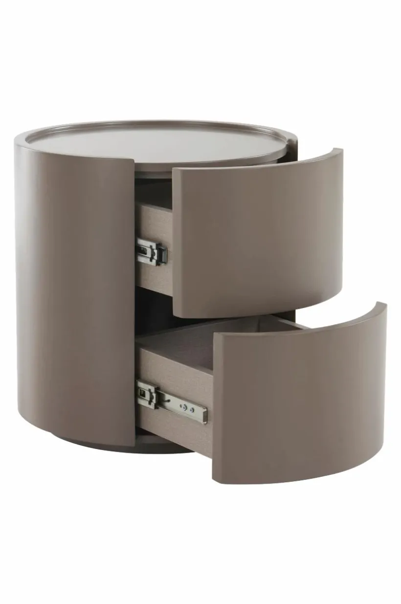 Sängbord för sovrum, tillverkat av MDF med en rund form och två praktiska lådor, ger en modern touch till alla hem. Bordet är kompakt och elegant och passar perfekt vid sängen för att hålla det viktigaste inom räckhåll.