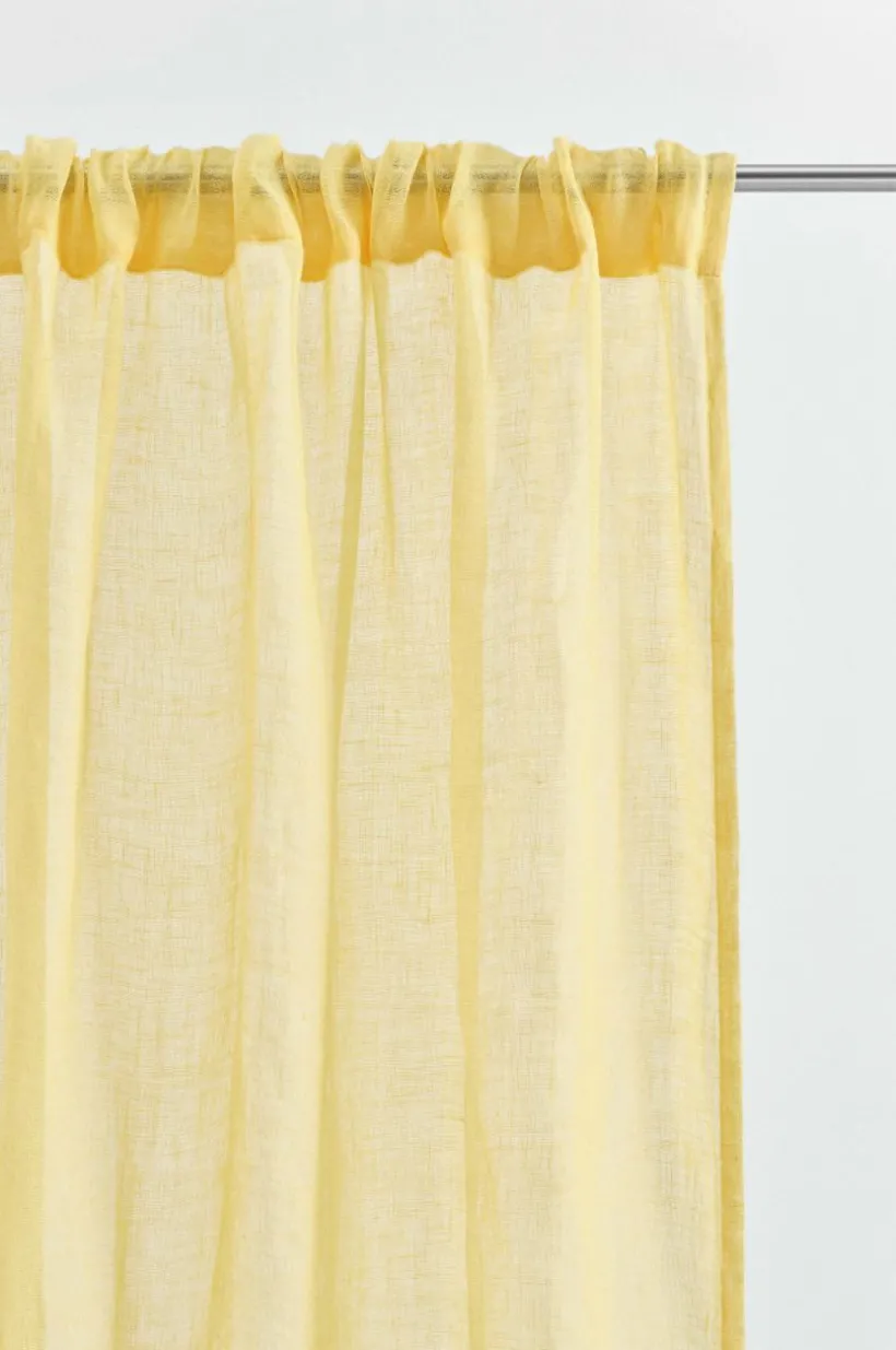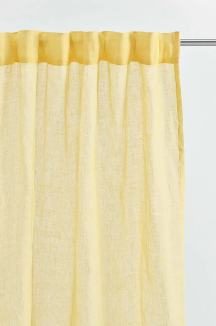 En gardinlängd i luftigt linne med påsytt multifunktionsband. Gardinen kan hängas upp med fingerkrokar, kanal samt dold hälla.