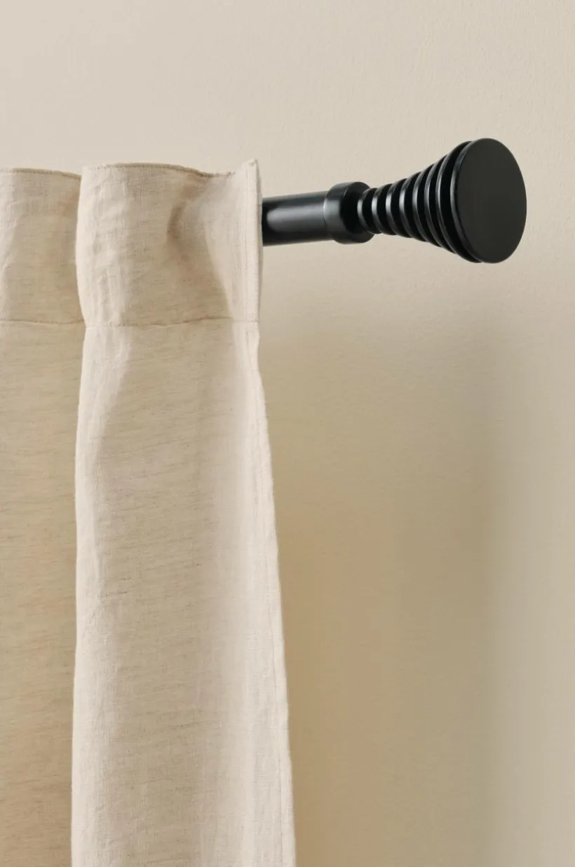 ELLIE gardinstångsset ger en modern touch till ditt vardagsrum, kontor, kök eller sovrum. Denna kompletta gardinstång är tillverkad med en stålstång, aluminiumfästen och räfflade ändknoppar av aluminium. Den justerbara längden garanterar en perfekt passform och ger en elegant finish till din inredning.