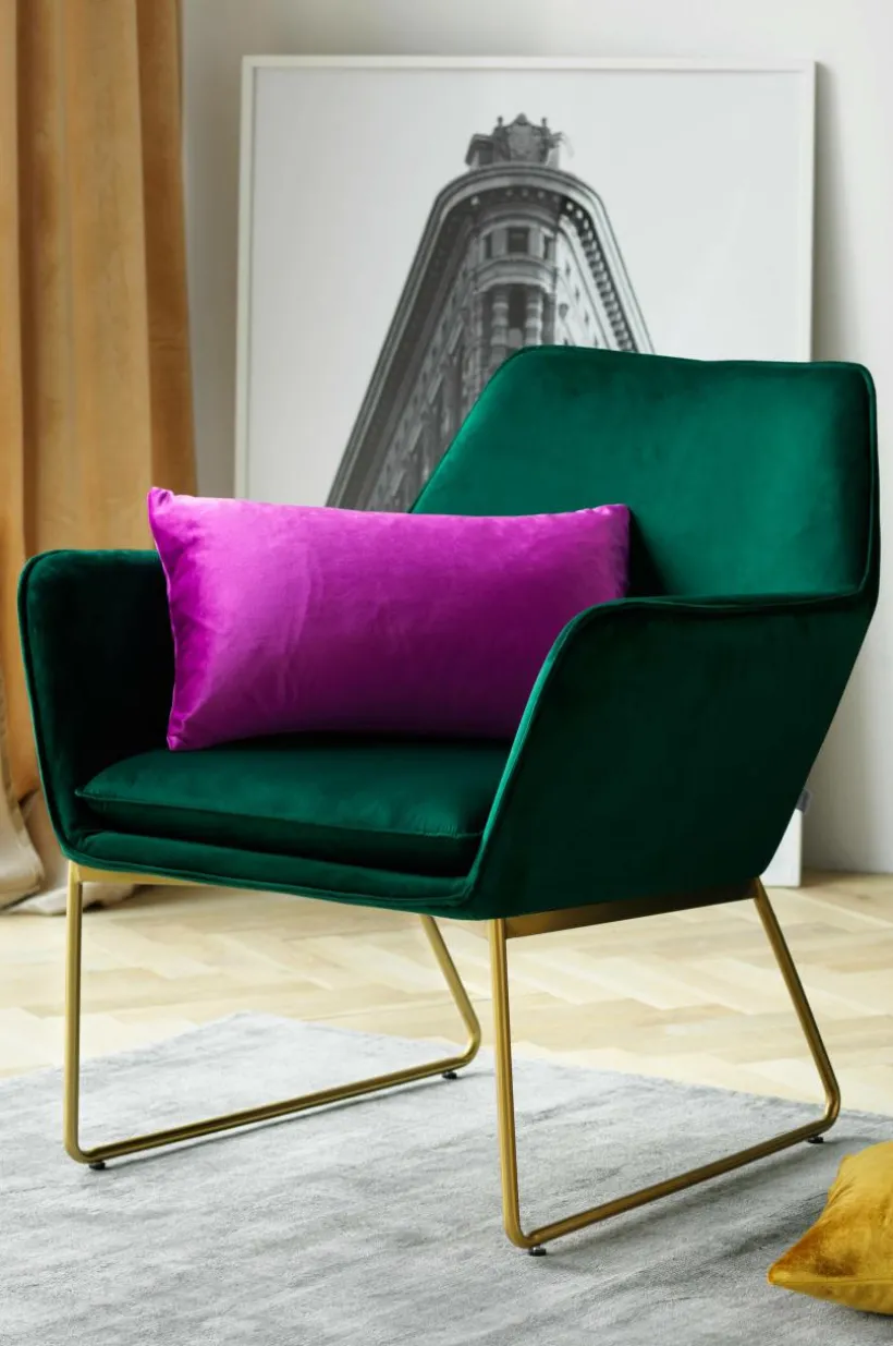 Enfärgad fåtölj med klädd sits i sammet och metallben. Bekväm, karaktärsstark och lätt är ord som beskriver ELLNE. Fåtöljen är bekväm tack vare sin sittvinkel och de mjuka dynorna i sammet. Tygets slitstyrka är på 28000 Martindale. Viss montering krävs. Monteringsanvisningar medföljer.