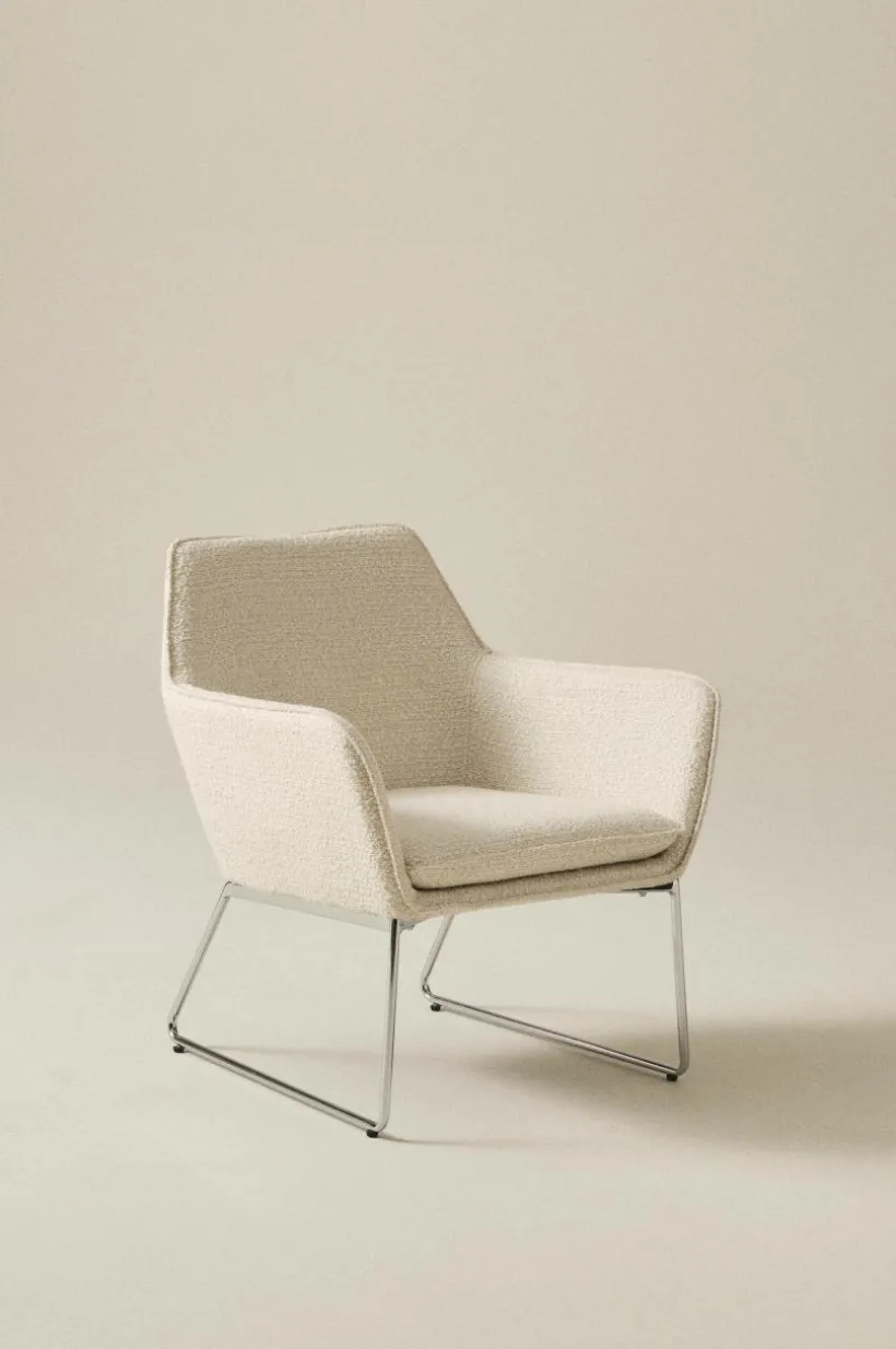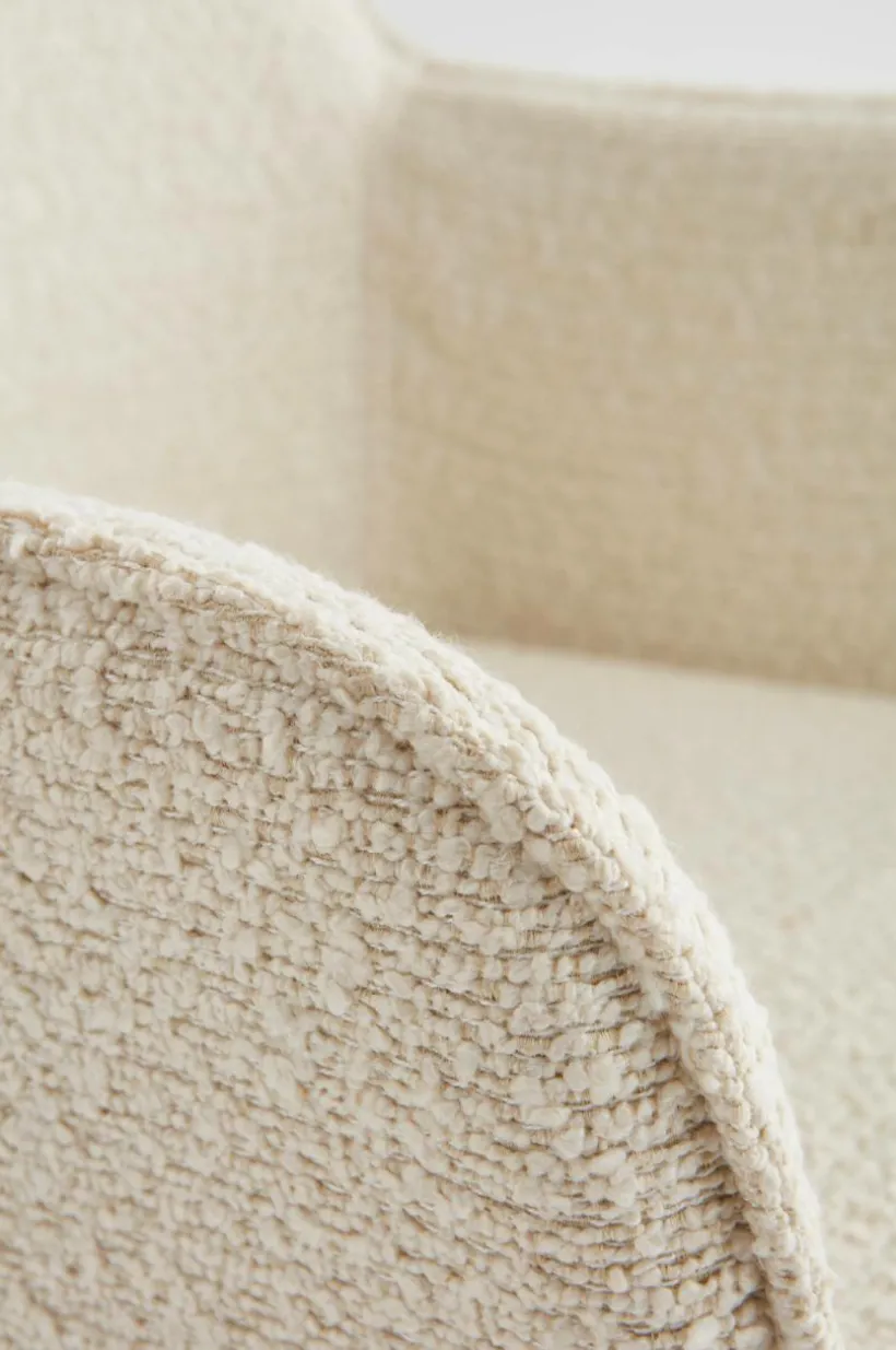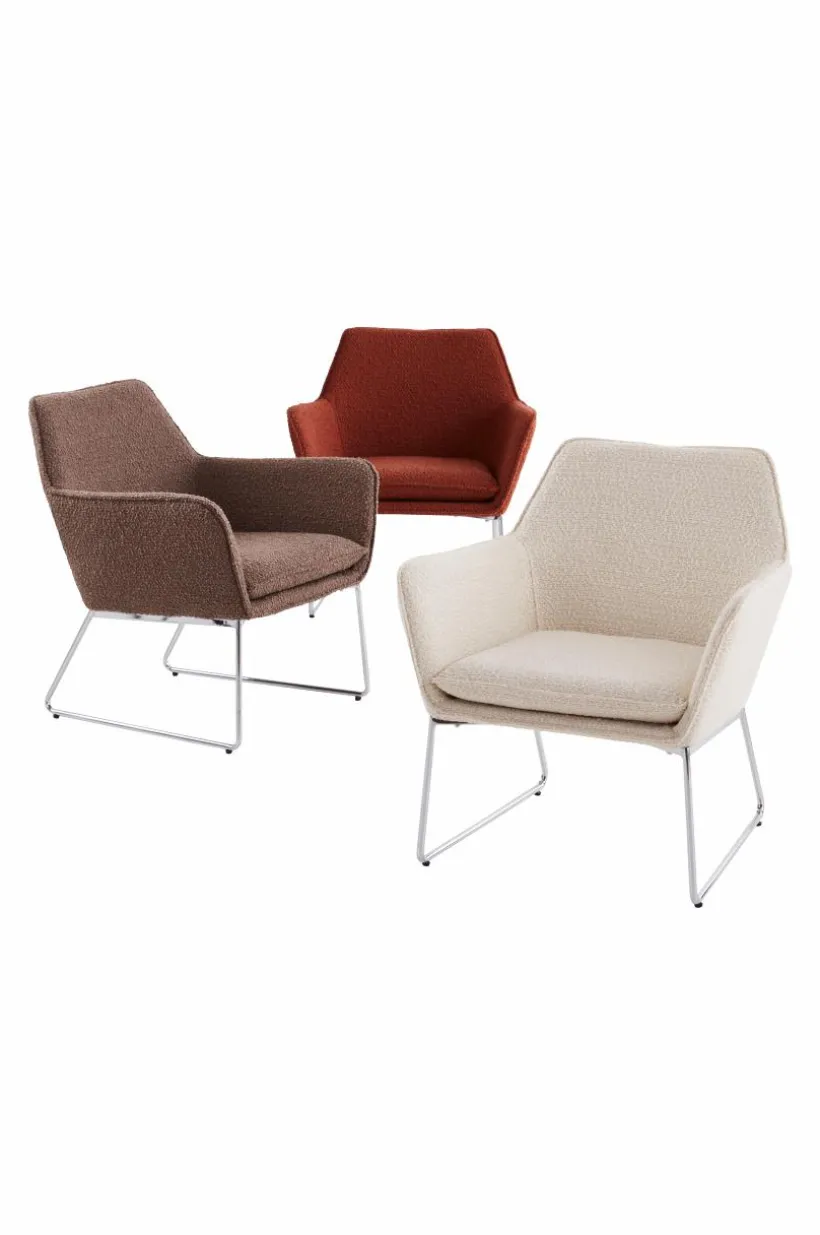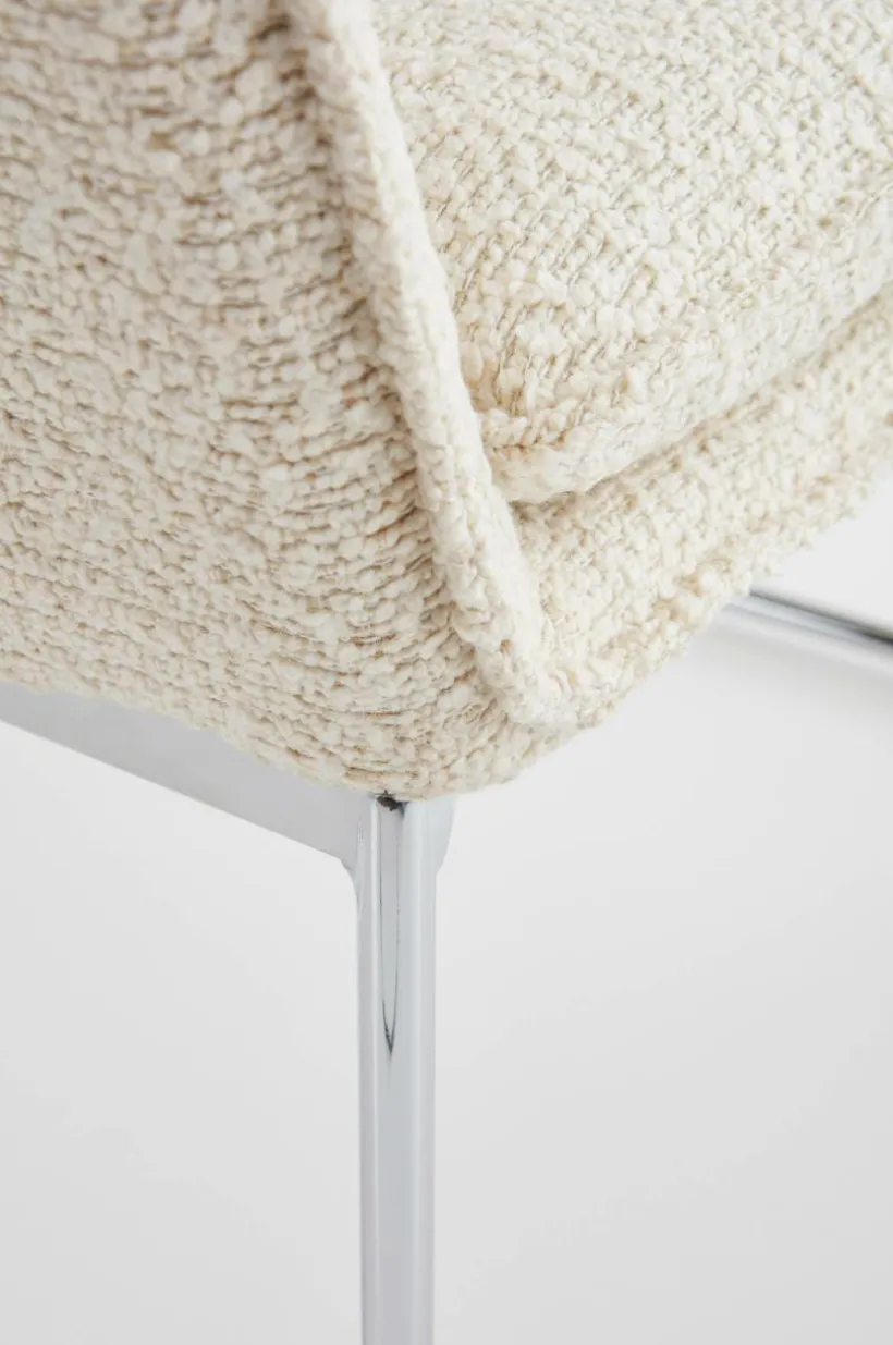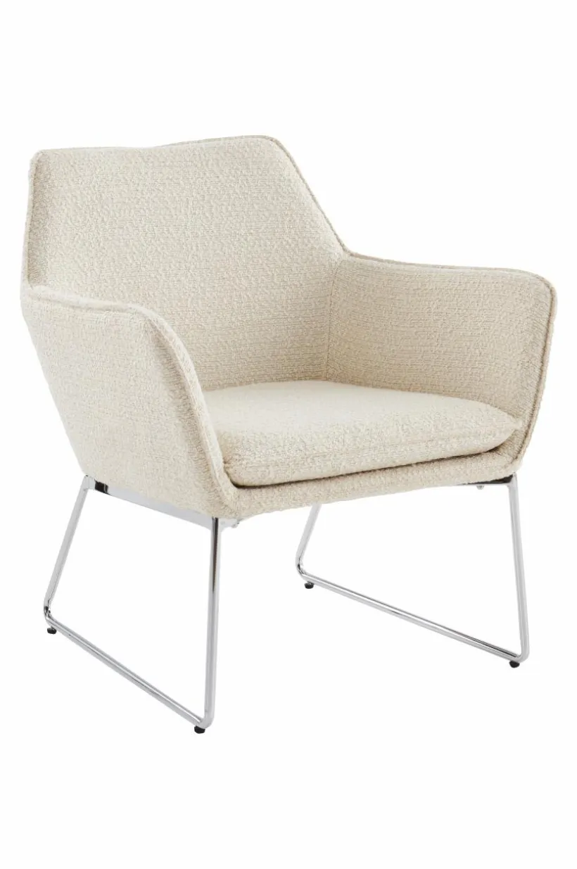 Enfärgad fåtölj som är klädd i ett läckert bouclétyg och har kromade metallben. Bekväm, karaktärsstark och lätt är ord som beskriver ELLNE. Fåtöljen är bekväm tack vare sin sittvinkel, mjukt vadderad rygg och den mjuka dynan i bouclétyg. Bouclétyget är tåligt med slitstyrka på 40000 Martindale. Viss montering krävs. Monteringsanvisningar medföljer.