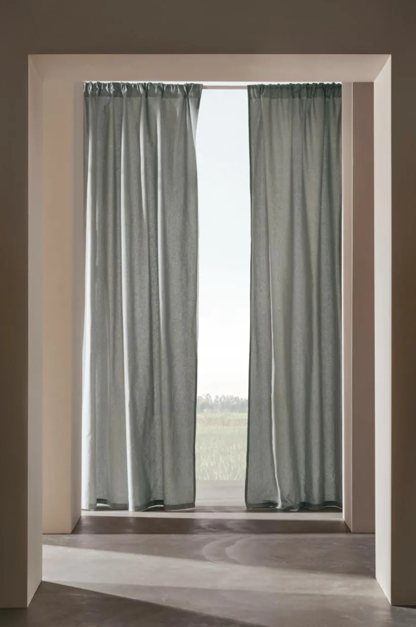 ELORA-gardinerna ger en modern och elegant touch till alla heminredningar. Dessa enfärgade gardiner är tillverkade av återvunnen bomull och erbjuder både skönhet och hållbarhet. Den enkla men eleganta designen förhöjer alla rum och ger en mysig och inbjudande atmosfär. Oavsett om det är i vardagsrummet, sovrummet eller matplatsen är Elora-gardinerna det perfekta tillskottet för att skapa ett elegant, modernt utseende utan att kompromissa med kvalitet eller stil.