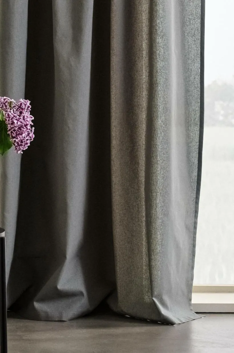 Krympning max 5 %. Maskintvätt i 40°C. Förläng livstiden på gardinerna genom att dammsuga dem försiktigt med mjukt munstycke med jämna mellanrum. På så vis undviker du att damm och smuts tränger in i tyget. Dessutom behåller dina gardiner färgen längre. Fläckar tas bort med varmt vatten på en ljus trasa. Dutta fläcken försiktigt med trasan, steama och låt torka.