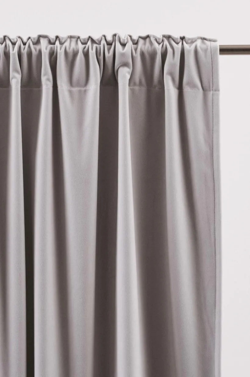 1-pack extra bred gardinlängd för mörkläggning. ELISE är i enfärgad sammet av polyester, varav hälften kommer från återvunnet material. Sammet har fin lyster och mjuk känsla, färgen skimrar vackert i olika ljus. ELISE är mycket prisvärd och lika fin på baksidan som på framsidan. Gardinen är tätvävd så att beläggning på baksidan inte behövs.Observera att de olika färgerna varierar i mörkläggning. Längden har påsytt multifunktionsband och kan hängas upp med fingerkrokar, kanal samt dold hälla.