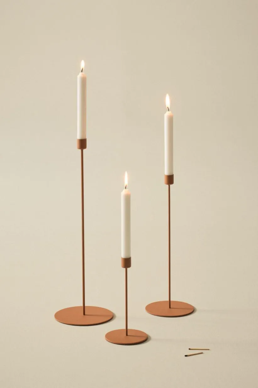 3-pack smala ljusstakar i pulverlackad järn. Perfekt både till vardag och fest.