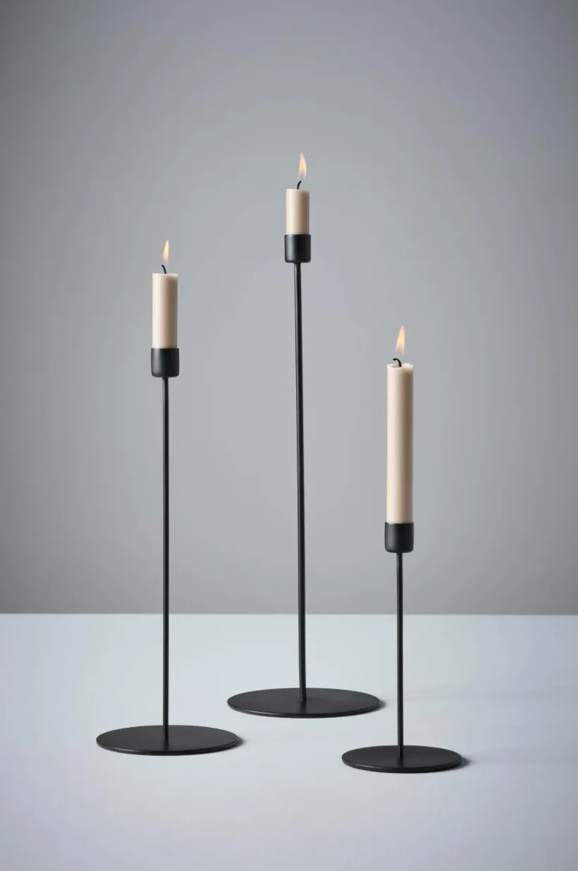 3-pack smala ljusstakar i pulverlackad järn. Perfekt både till vardag och fest.