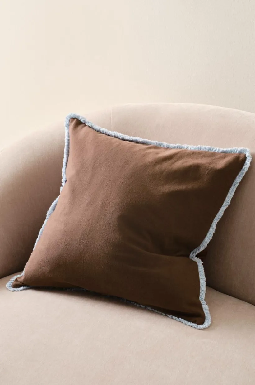 Kuddfodralet EMMA är tillverkat av enfärgad, tvättad bomull. Med en mjuk känsla och fina fransar längs kanterna ger detta överdrag en fin känsla till ditt rum. Dragkedja i nederkant.