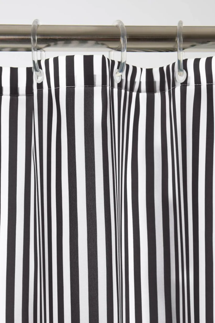 Duschdraperi EMMY med digitaltryckta ränder, är designat för en fräsch badrumsupplevelse. Det digitala trycket ger ett distinkt mönster. Duschdraperiet är tillverkat av polyester med vattenavvisande behandling. Gardinen har 12 matta öljetter. Öljetterna är tillverkade av koppar för att undvika rost. Blanda stil och funktionalitet på ett enkelt sätt med detta duschdraperi, njut av ditt badrum.