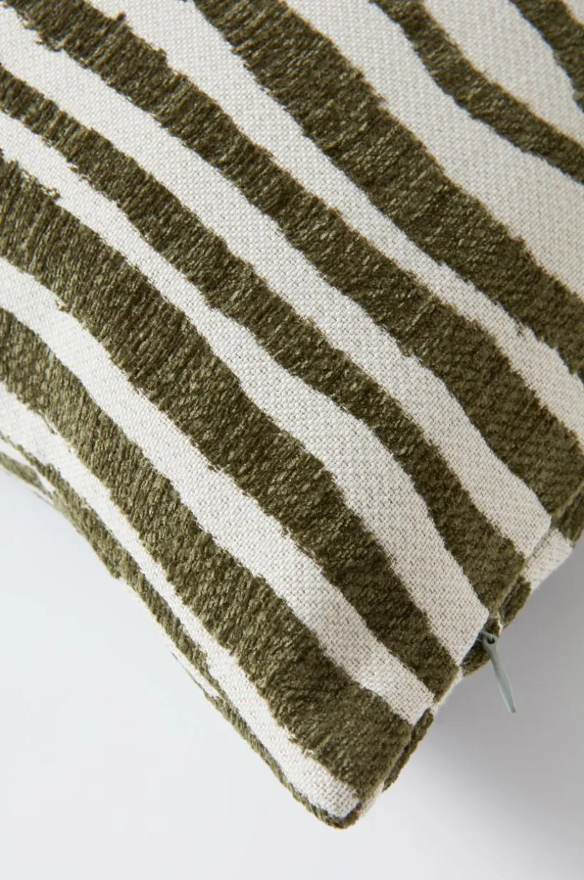 1-pack kuddfodral med jacquardvävt mönster. Mönstret som för tanken till zebrans ränder går i milda färger på den vita väven, mönstret är lätt att matcha i ett modernt hem likväl som hemmet med retrostil. Både framsidan och baksidan är mönstrade. Dragkedja i nederkant. Tygets gramvikt 420 g/m².