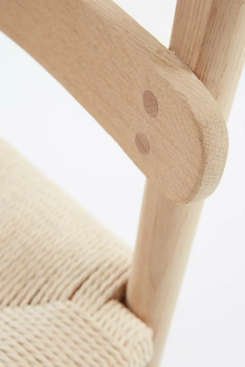 Barnstol av massiv ek med sits av papperssnöre. ERSTAD är exakt som en stol till stora fast i litet format. Det är en klassisk stol i skandinavisk stil med snyggt formad rygg, bekväm att luta sig mot. Det fina träslaget har mjuk, såpad yta. Sitsen, som vi ser på många klassiska möbler, är av tvinnat papperssnöre i färg som matchar träslaget. Levereras omonterad.