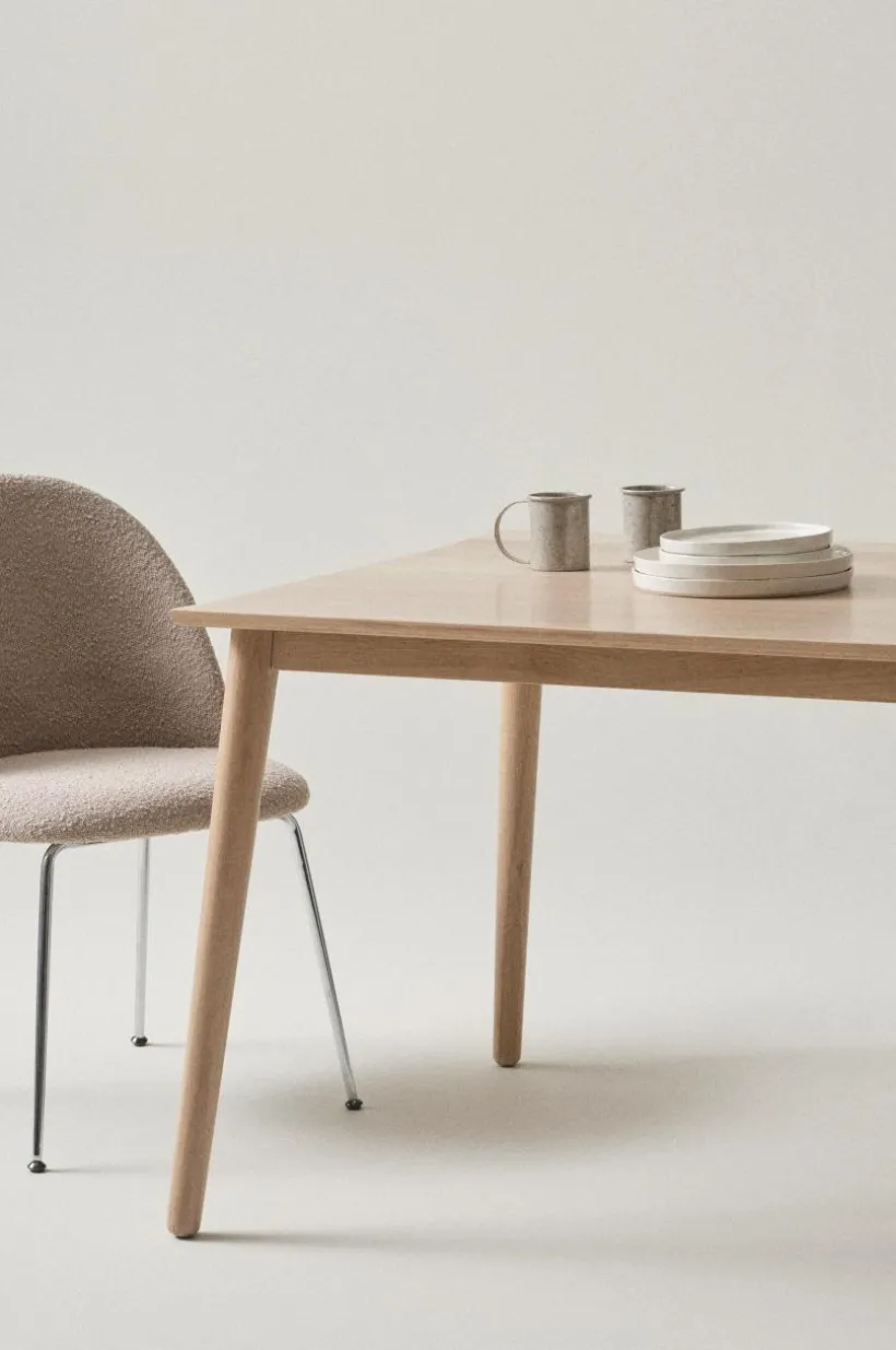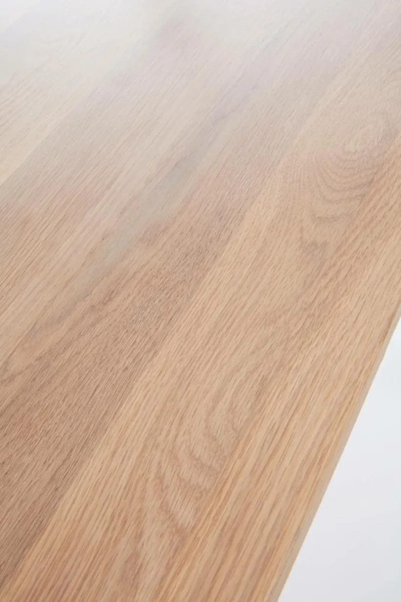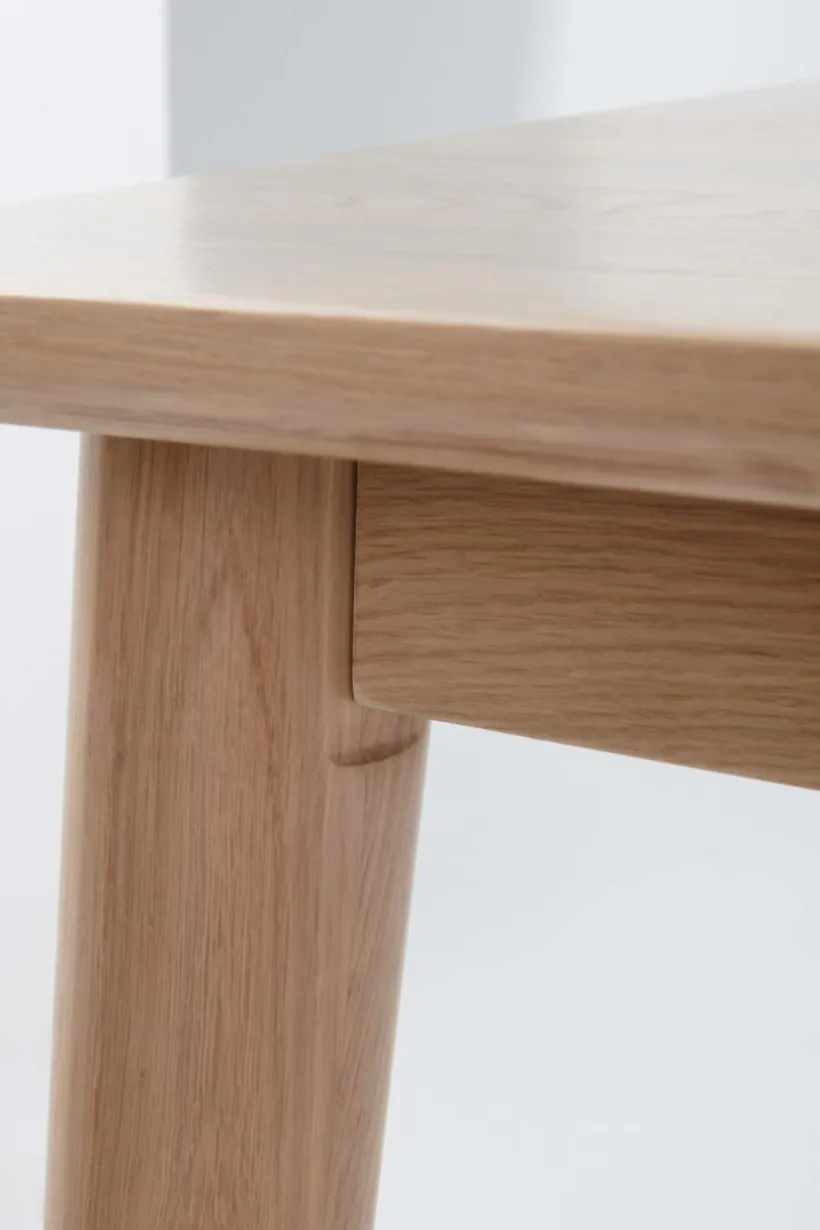 Middagsbordet ESLÖV är tillverkat av massiv ek och tillför enkelhet och stil till din matsal. Träets naturliga ådring framhävs vackert med en vattenbaserad lack som ger en subtil glans och ett hållbart utseende. FSC-certifiering innebär ansvarsfulla inköp och ger sinnesfrid tillsammans med tidlös design. Det här bordet är perfekt för att samla familj och vänner och kombinerar elegans med funktionalitet i alla moderna hem.