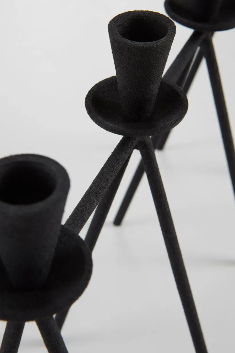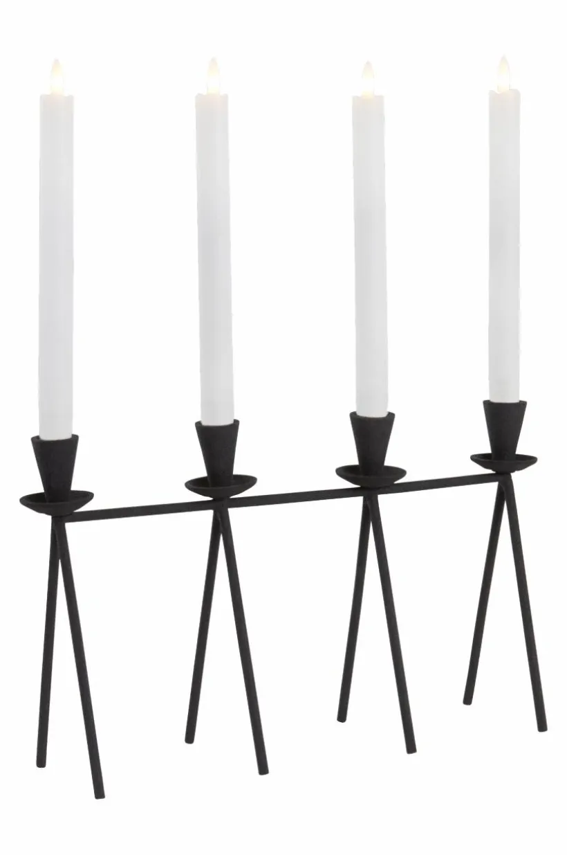 Ljusstake av järn med pulverlackerad, matt yta. Formen ger associationer både till en folkloristisk stil och till en medeltida stil. Ljusstaken har fyra ljushållare vilket ger den en självklar plats i advent, men ESTEFAN är vacker året om. Ljus medföljer ej.